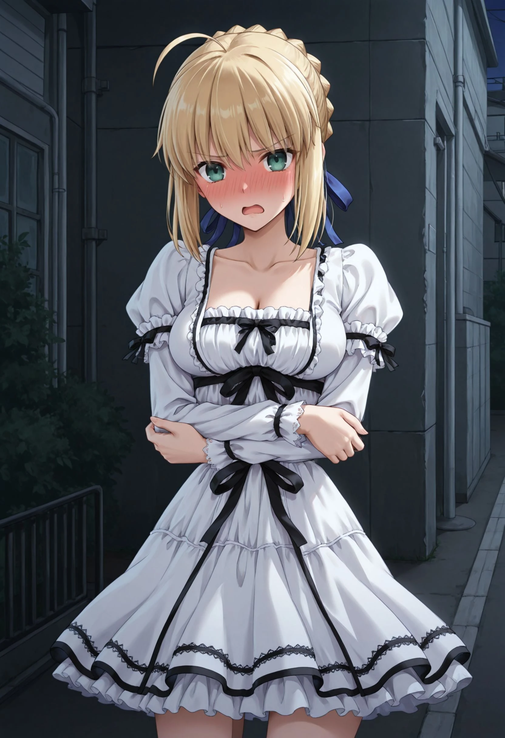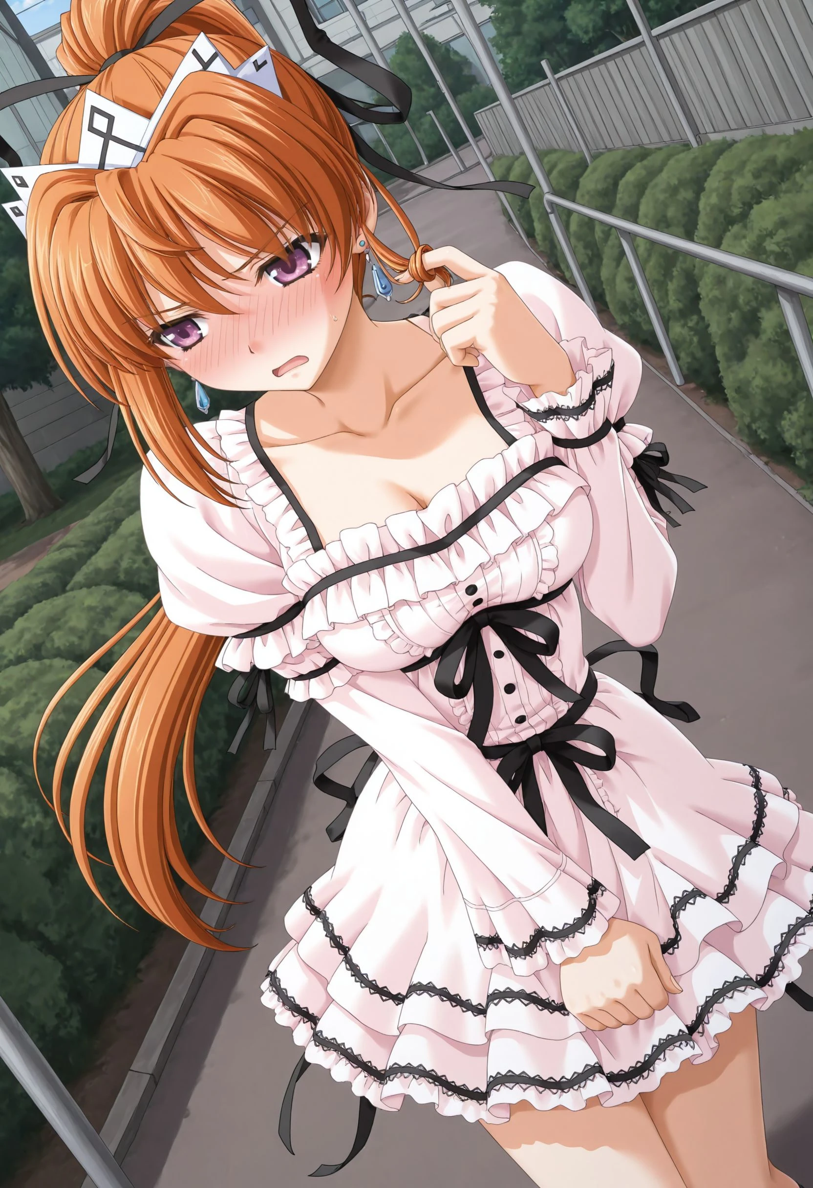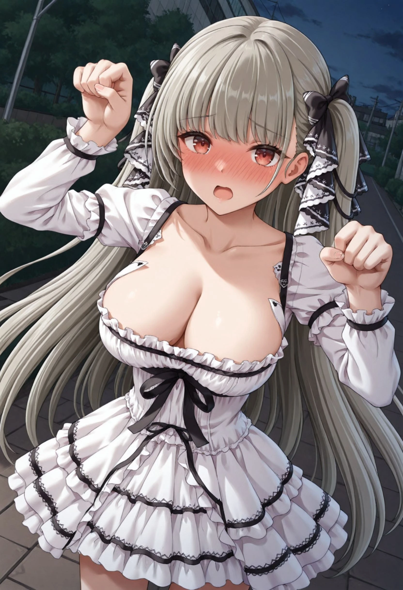 wd dressil01,dress,frills,ribbon,long sleeves,lace,blush,lace trim,petticoat,frilled dress,collarbone,short dress,frills arm strap