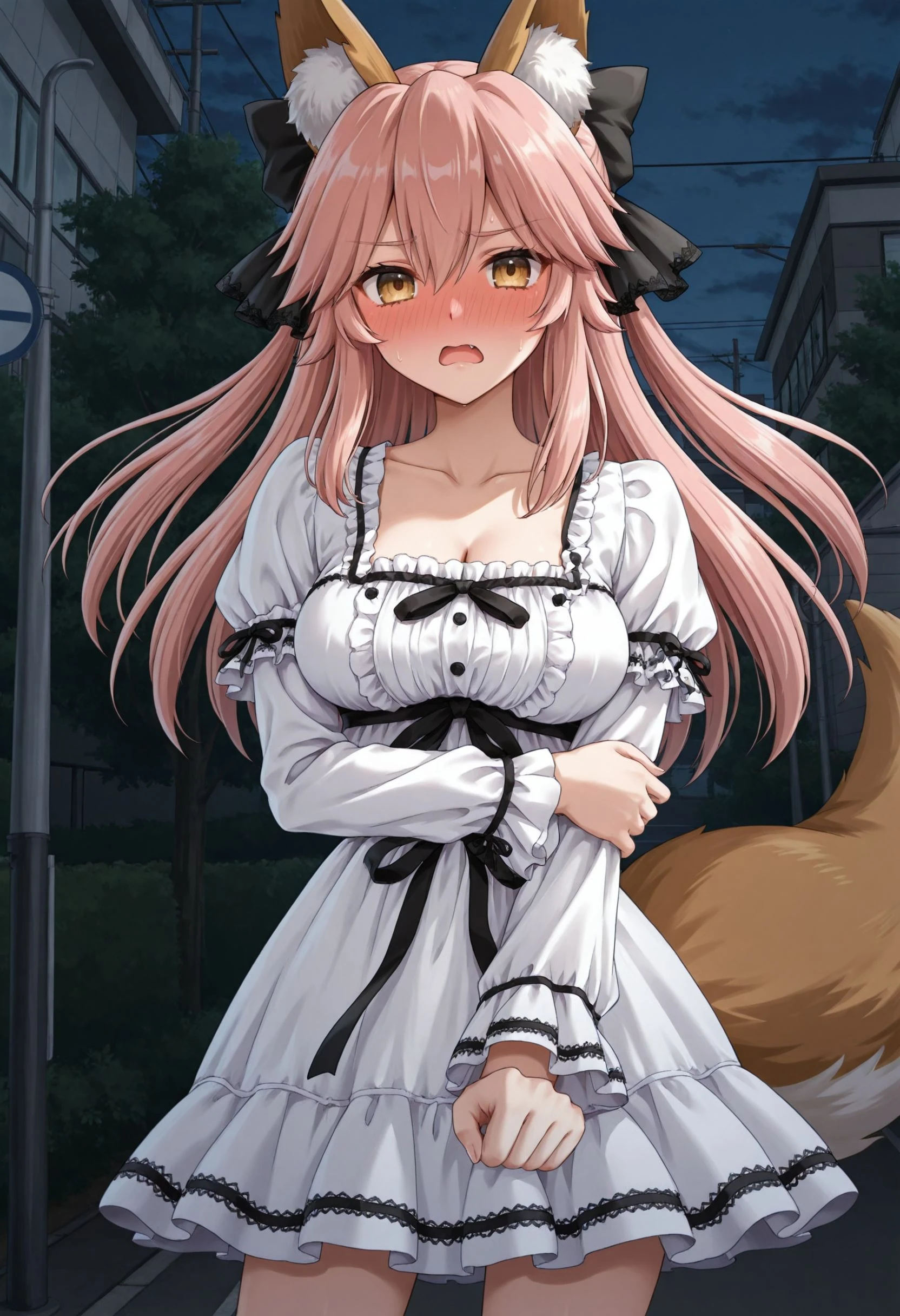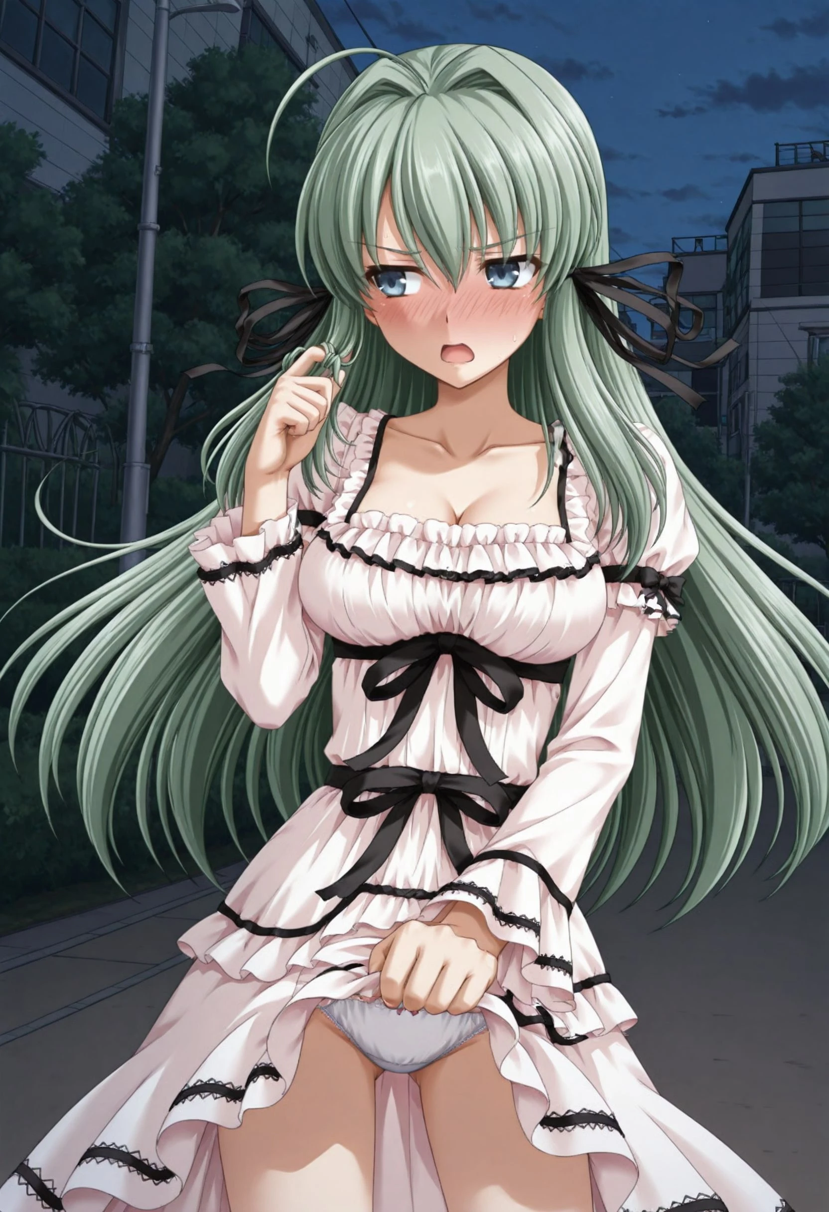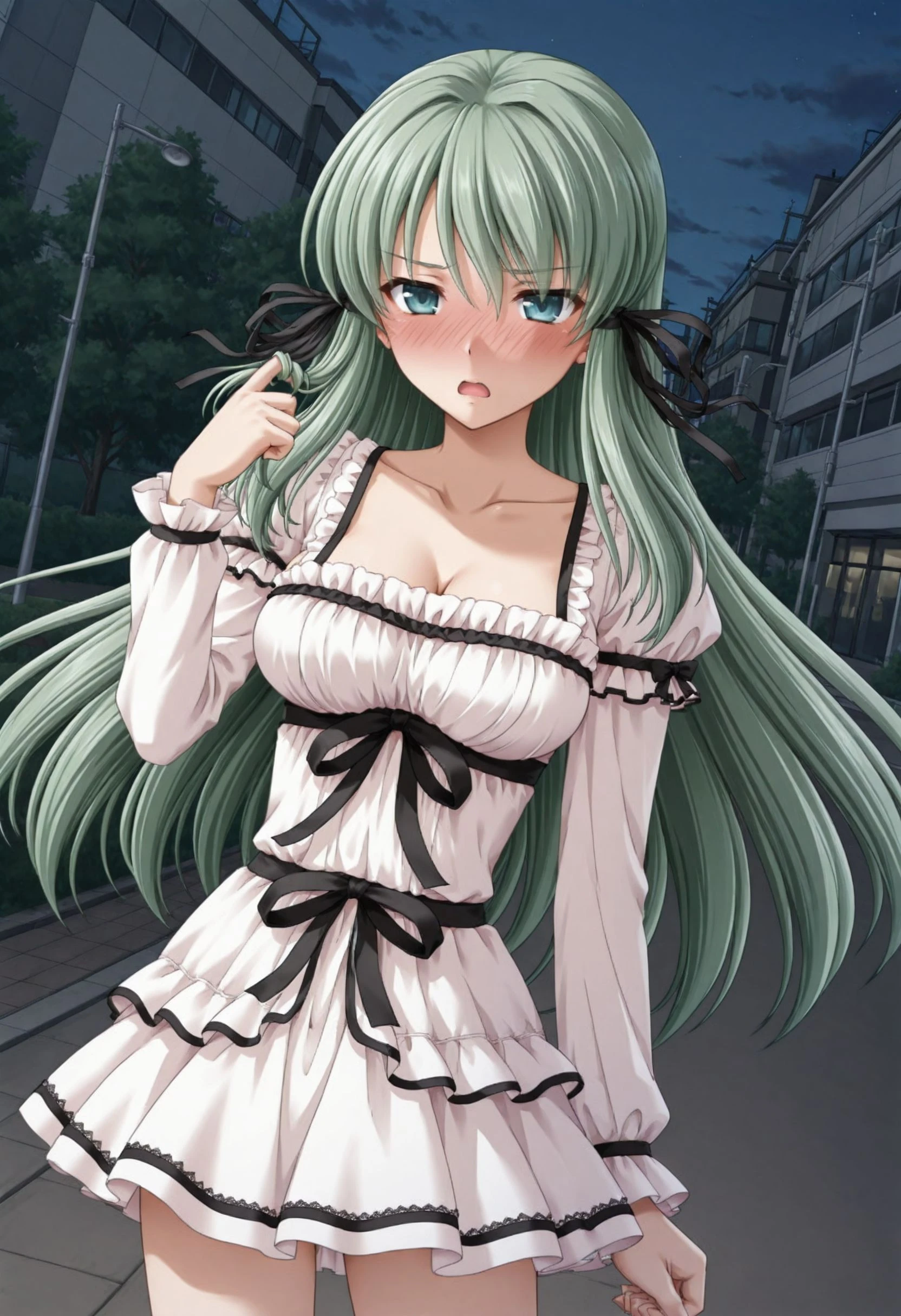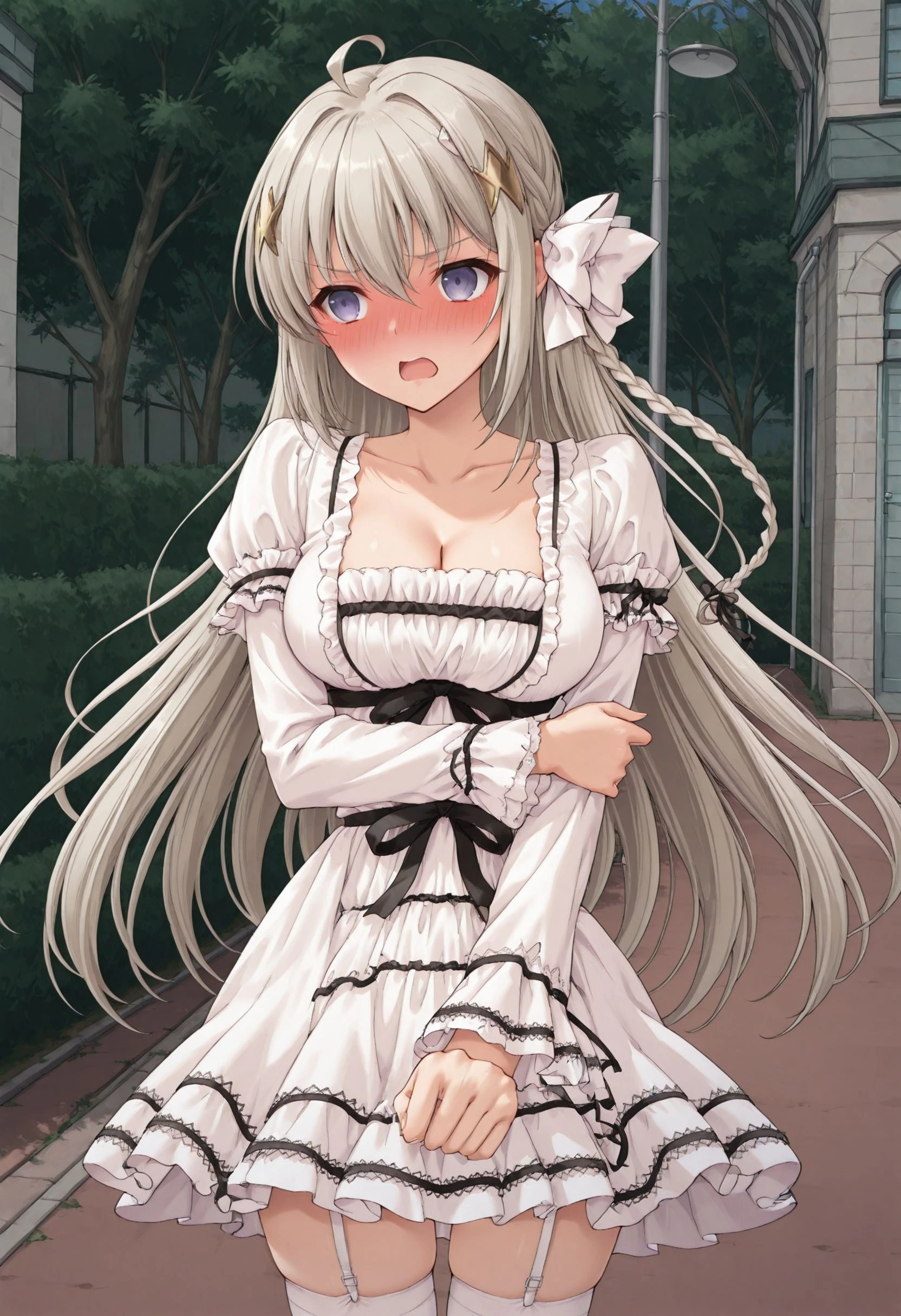 wd dressil01,dress,frills,ribbon,long sleeves,lace,blush,lace trim,petticoat,frilled dress,collarbone,short dress,frills arm strap
