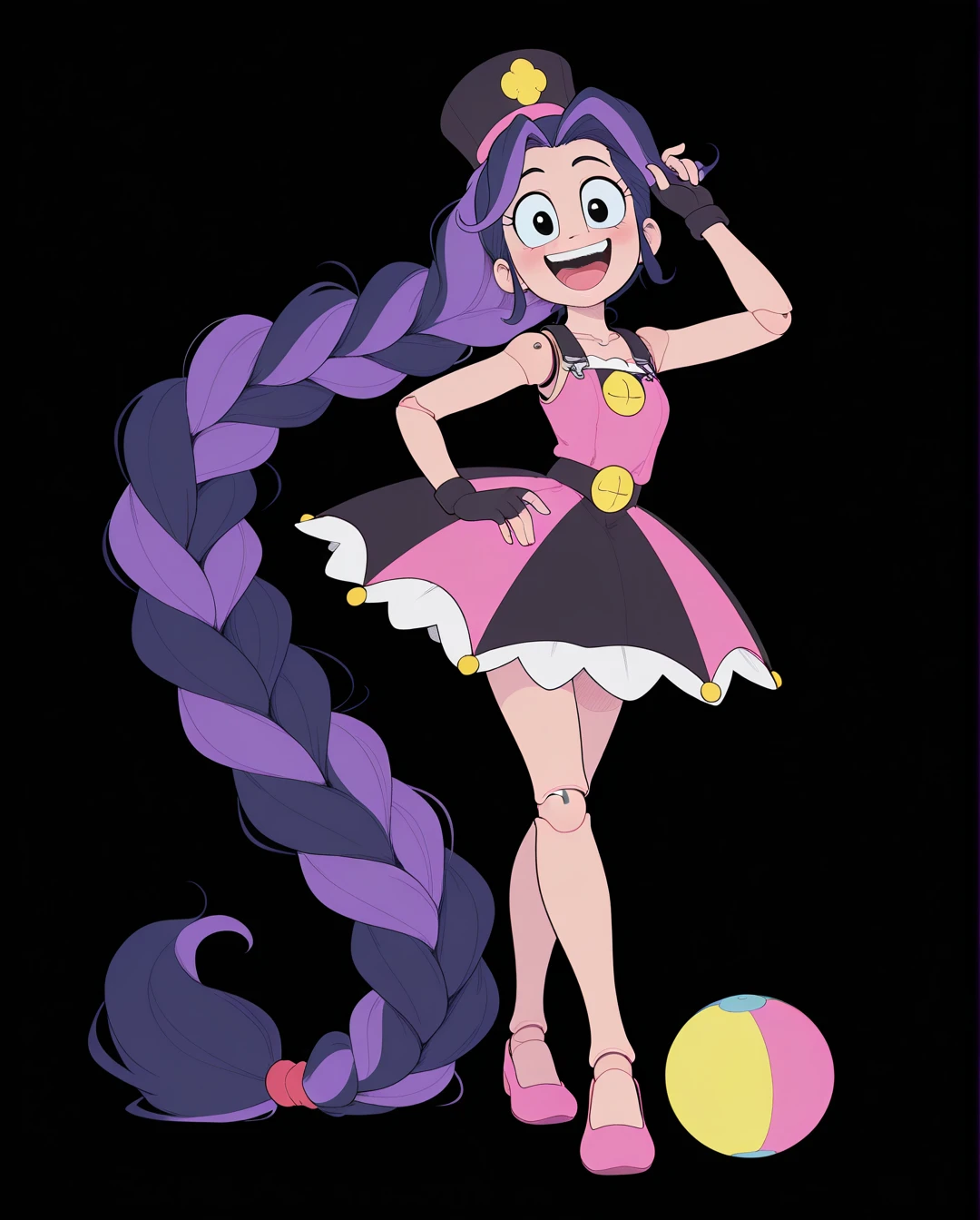 purple hair, blue hair, multicolored hair, doll joints, black eyes,