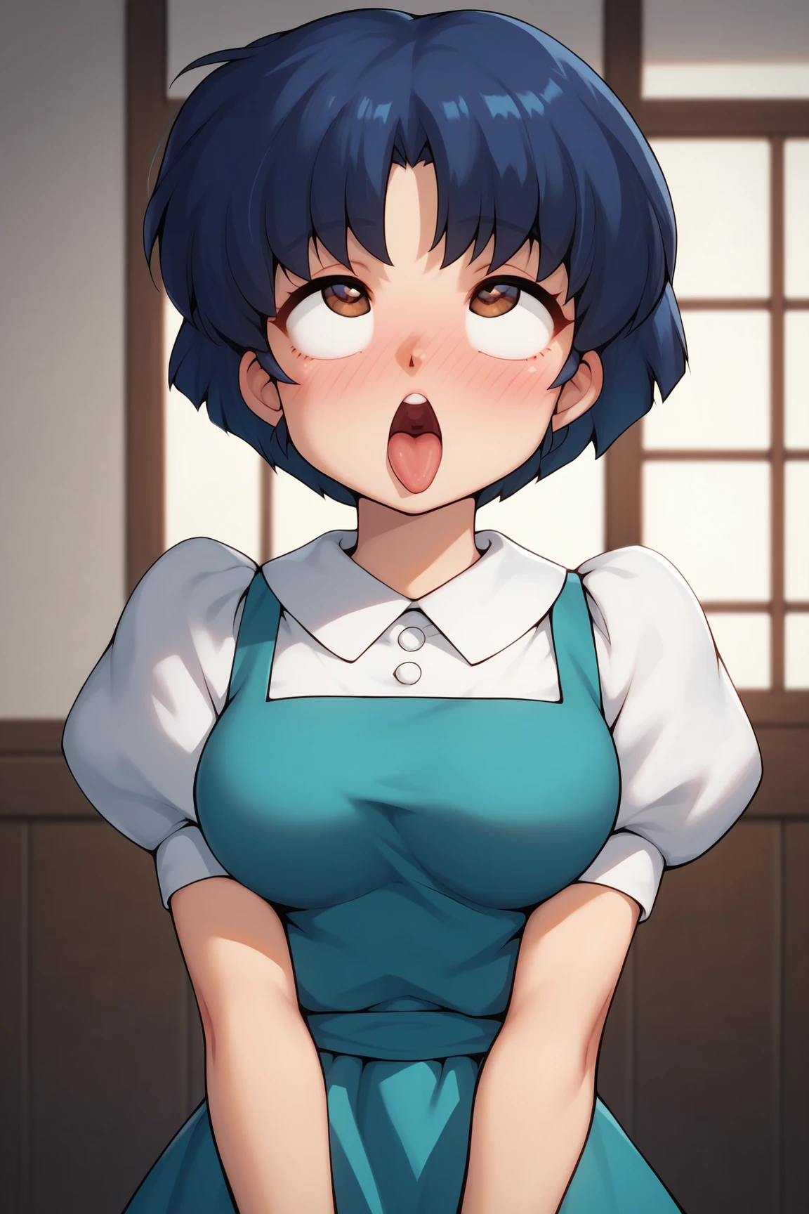 ➜ AkaneTendouRXL, mature female, big eyes, brown eyes, dark blue hair, short hair, bangs, medium breasts, shirt collar, white shirt, blue dress, short sleeves, puffy sleeves, white stockings, black shoes]--|======[ 💗 My Settings: 💗 ]======|--[