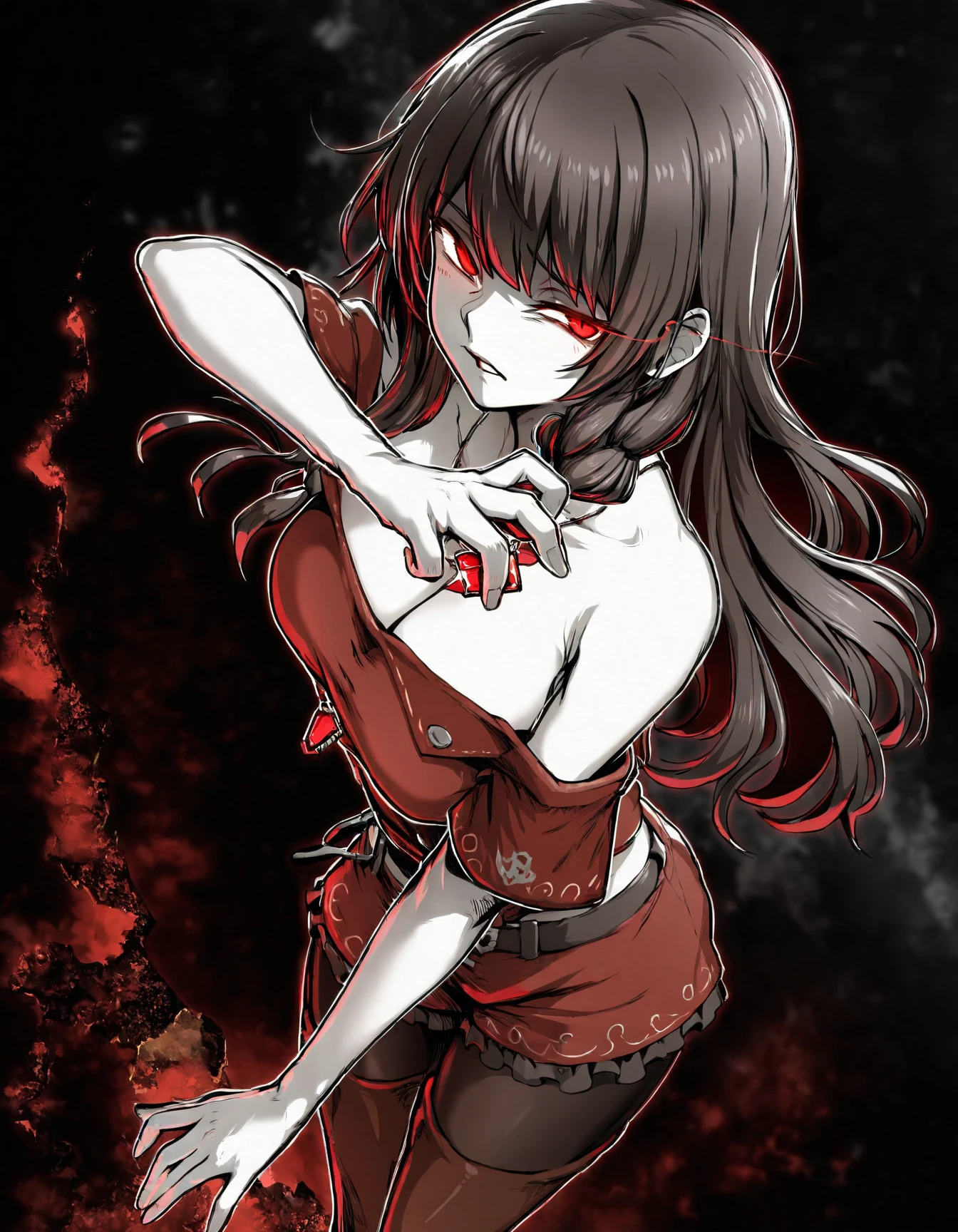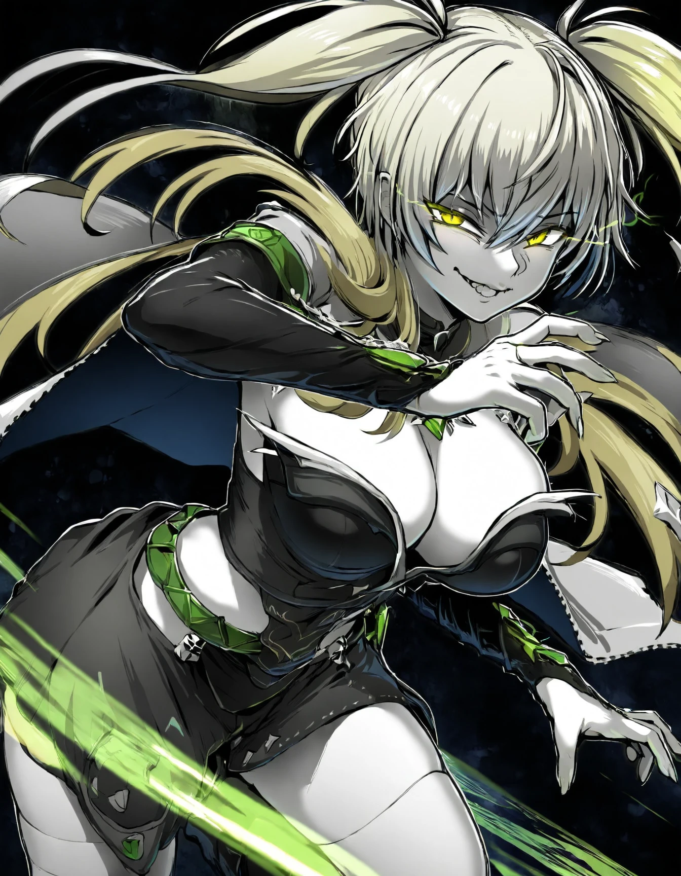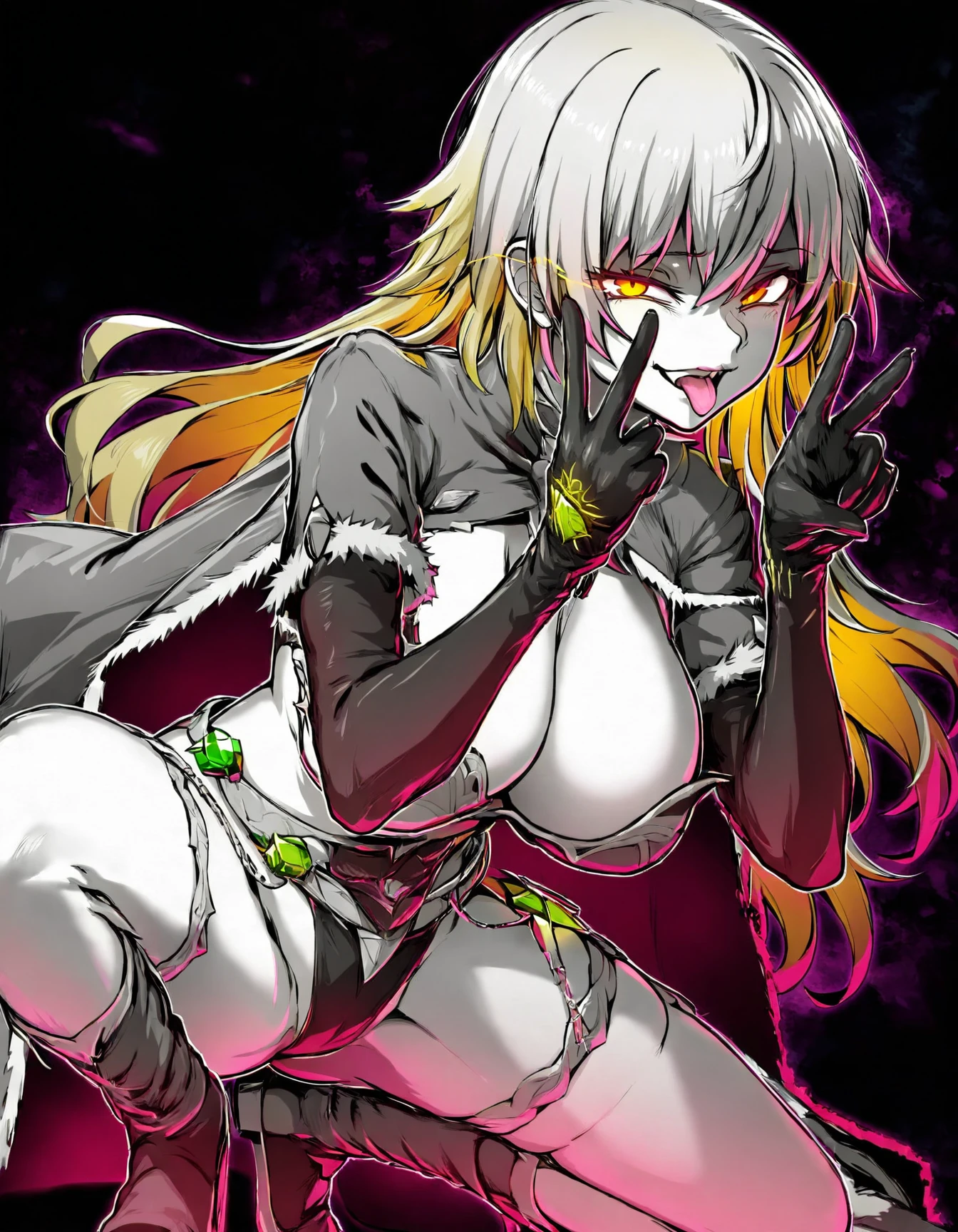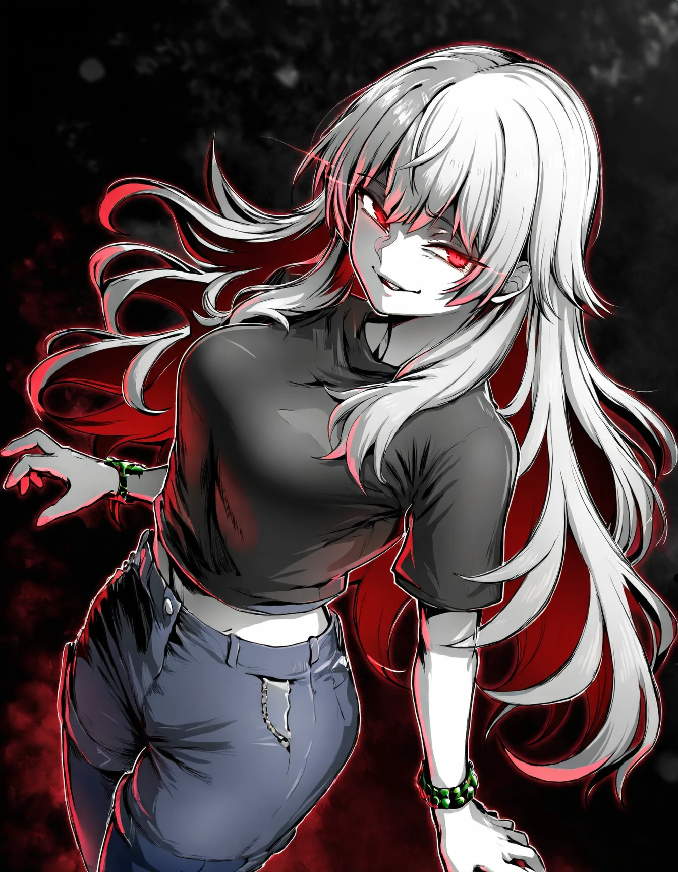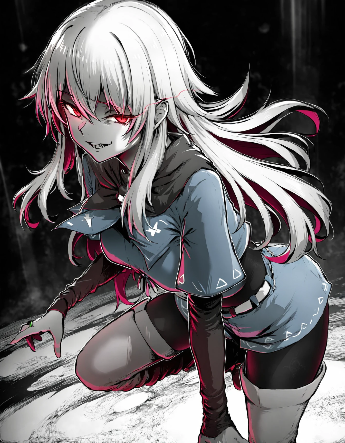 Triggers: ebiblue, monochrome, greyscale, gesugao, black background, glowing eyes, colored eyes.