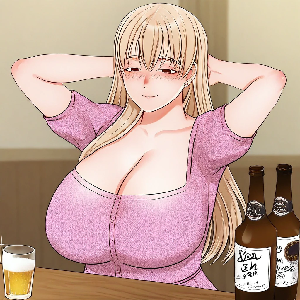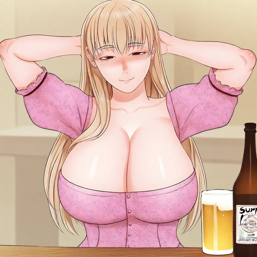 2. ((sexy pink dress, obscene cleavage, huge cleavage, ))