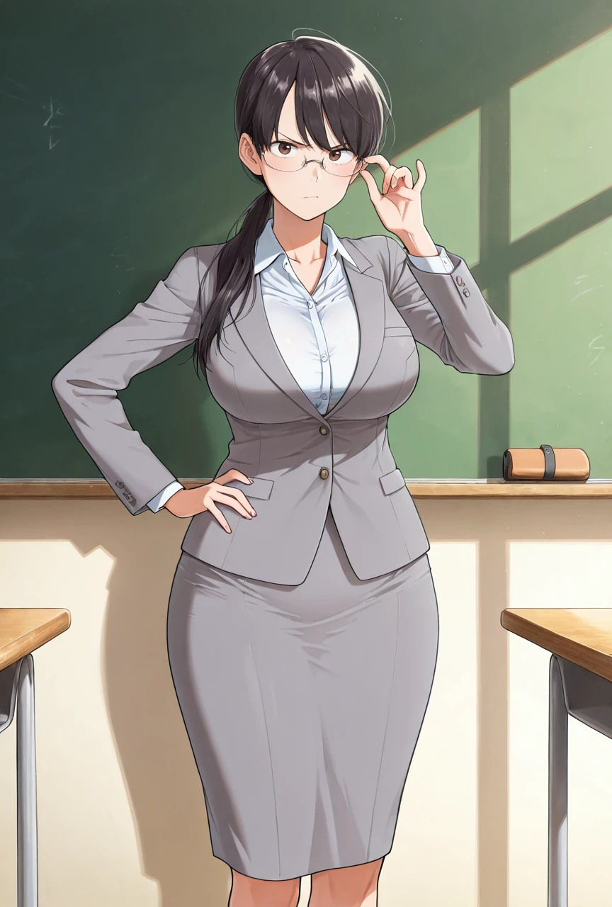 rinko_yoshitaka, mature female, brown eyes, black hair, bangs, long hair,
