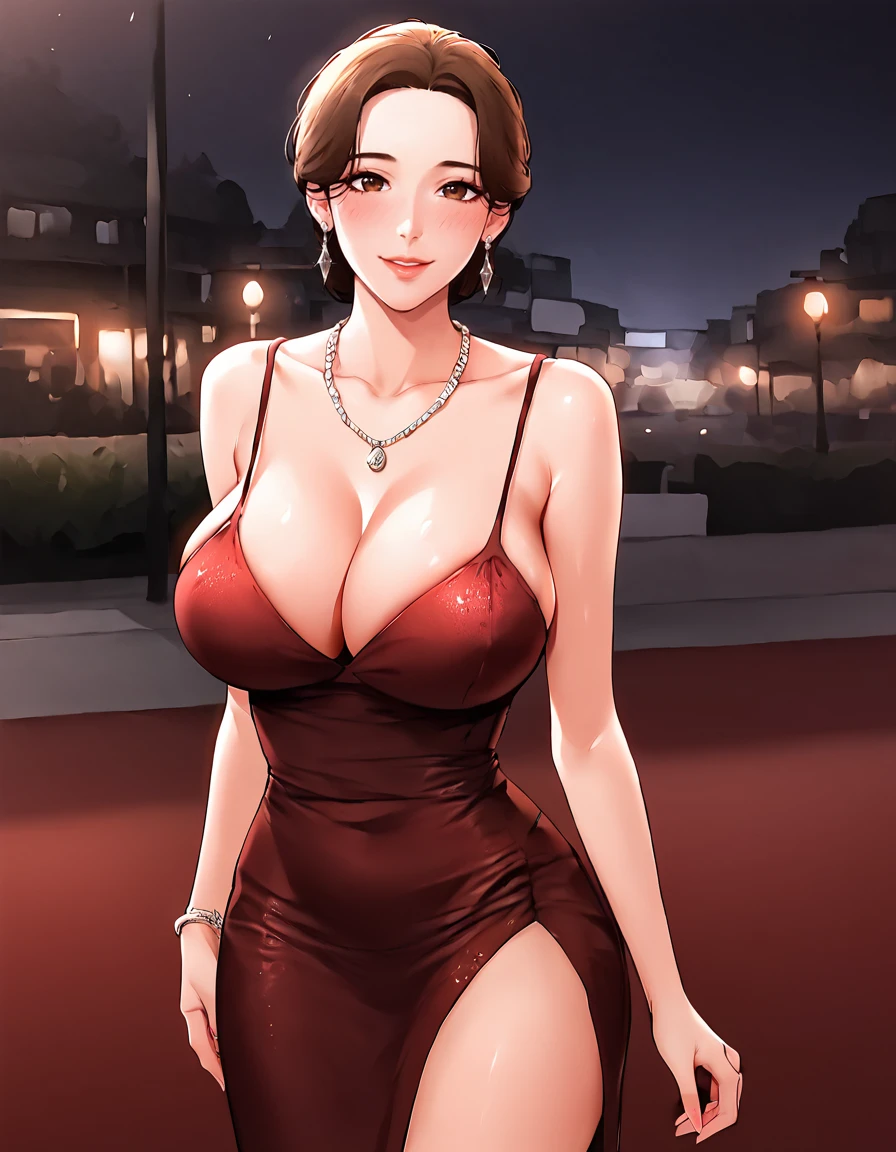 imshinhye, 1girl, large breasts, brown hair, brown eyes