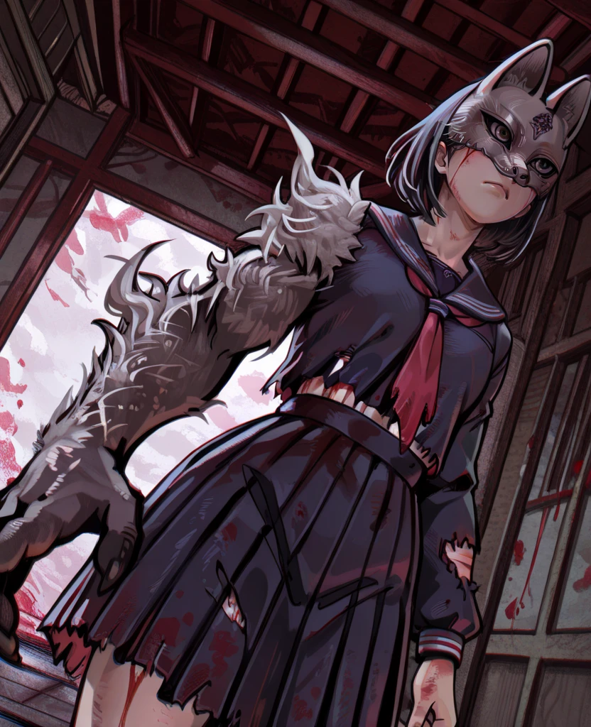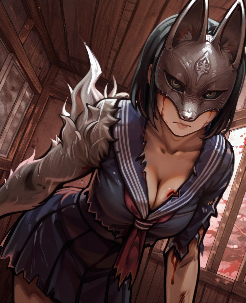 v2 - TW is hinakoxl, - has some animal arm training, and fox mask, training - but may need to put fur, in NEG if spawns without prompted