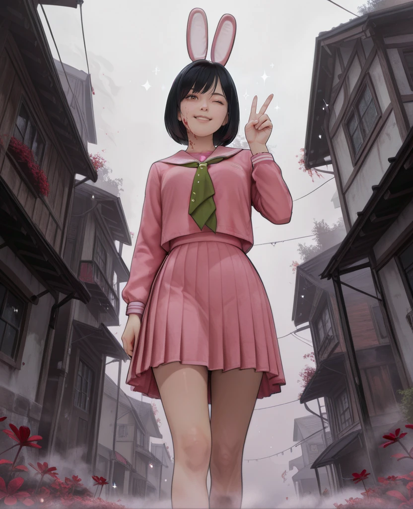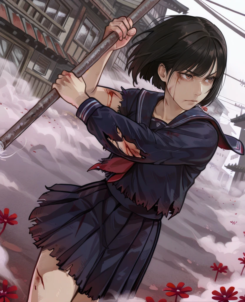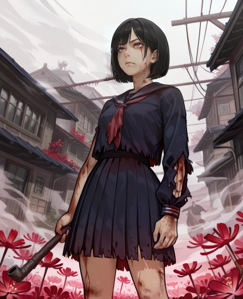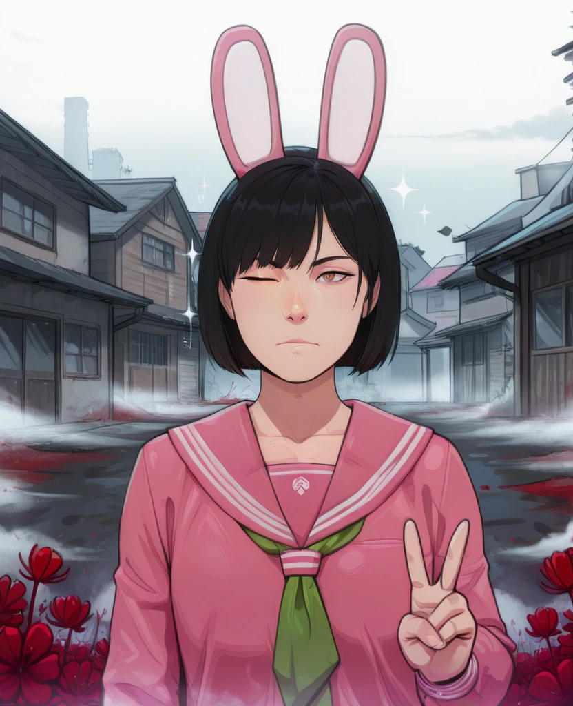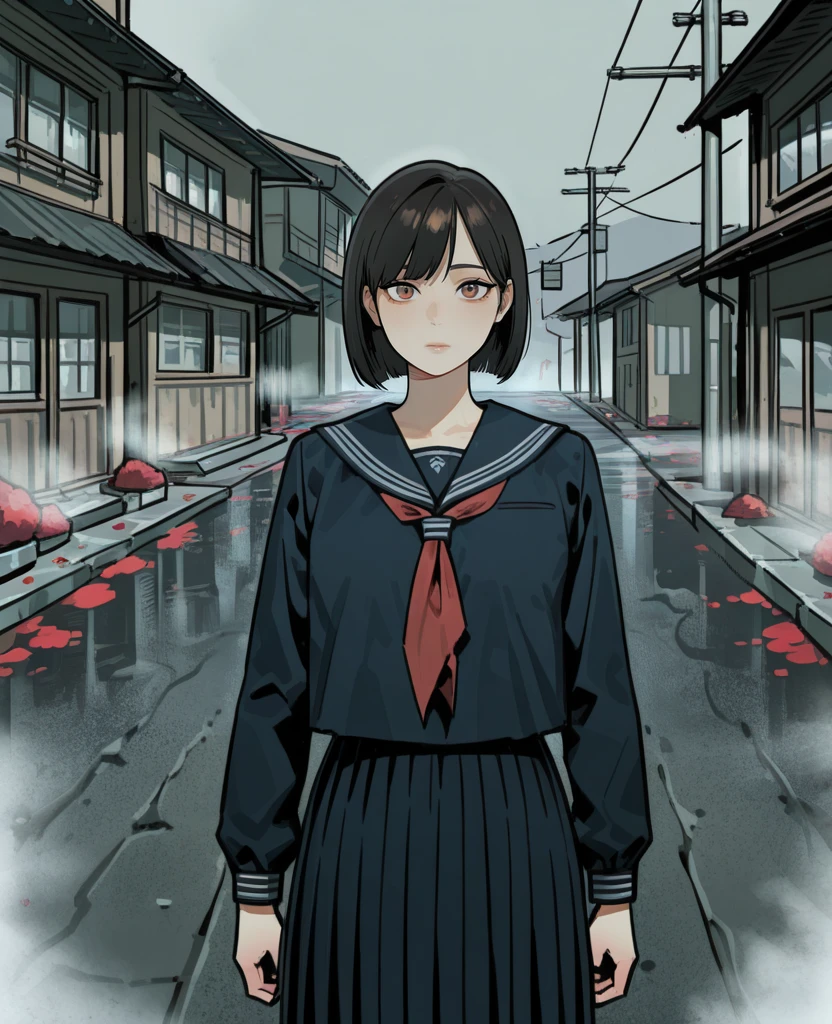 shnakoxl, black hair, brown eyes, bob cut, or medium hair,