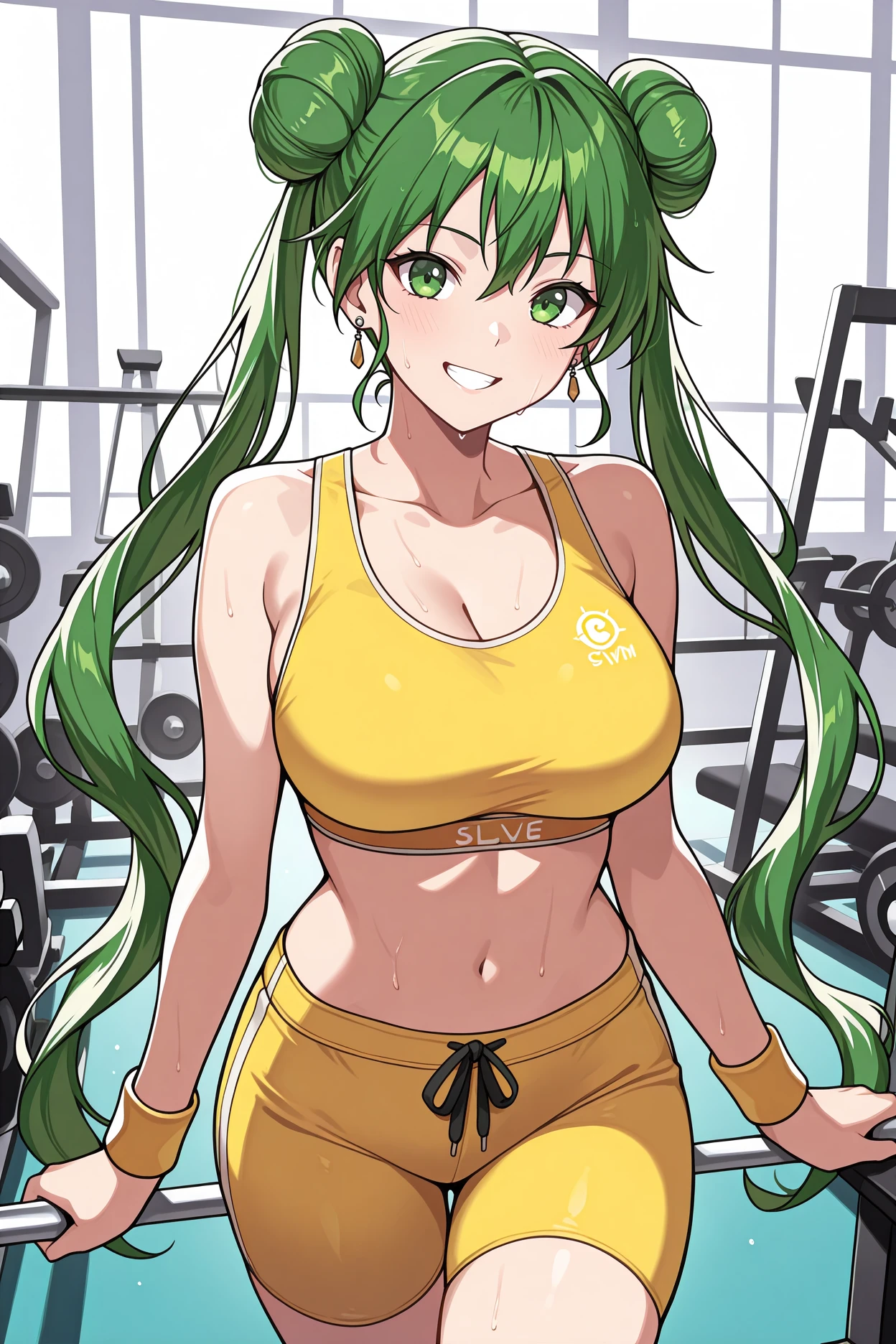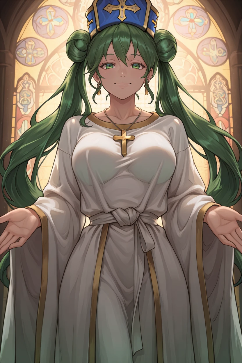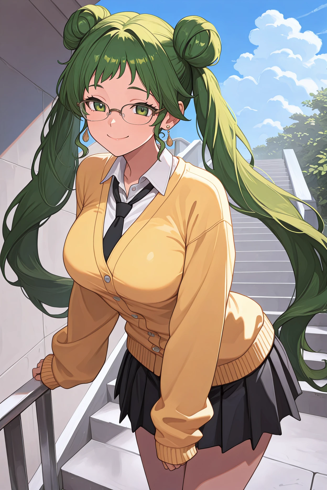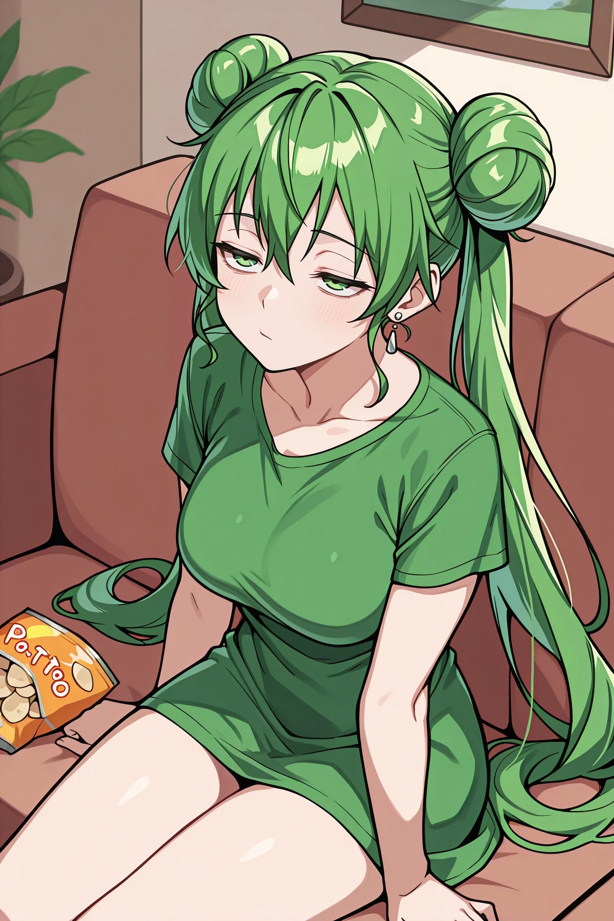 slvafe, twintails, double bun, green hair, very long hair, green eyes