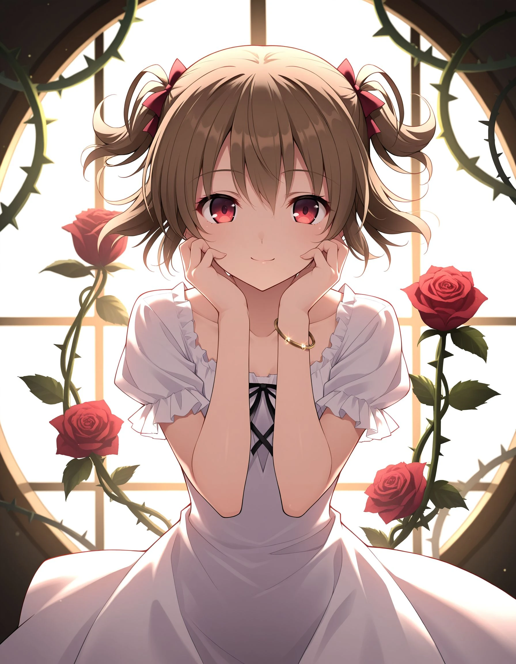 GNKM4k1n4, brown hair, red eyes, short twintails