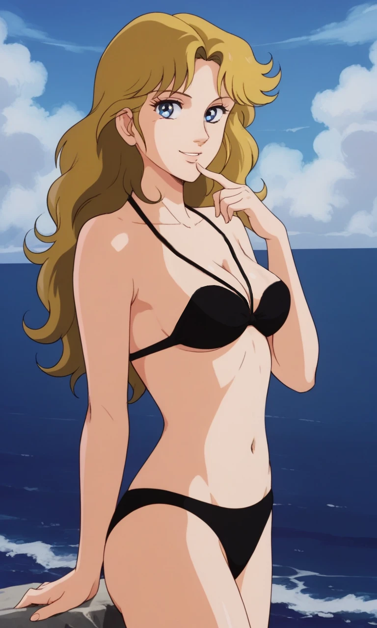 OUTFIT 6: black bikini, swimwear, cleavage, jewelry, pedant, necklace, (as Sexy Swimsuit in paradise)