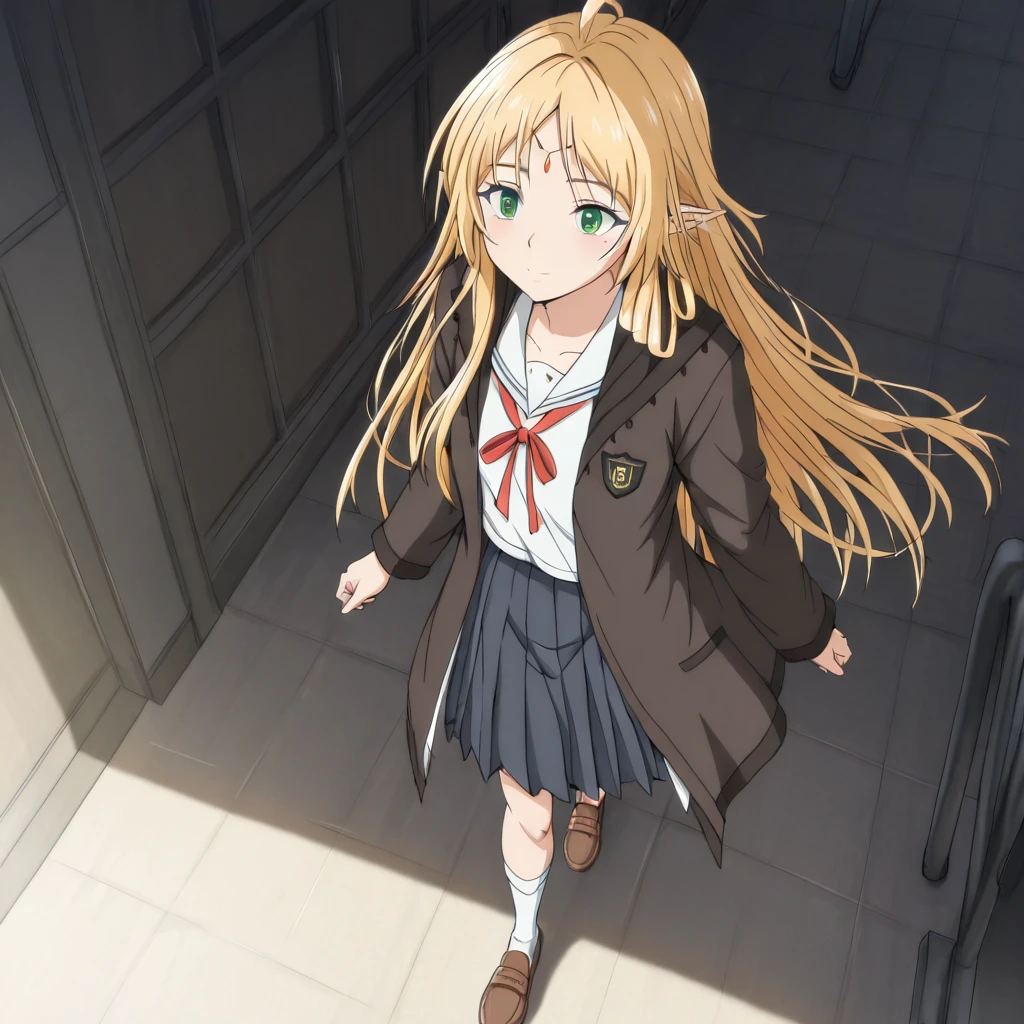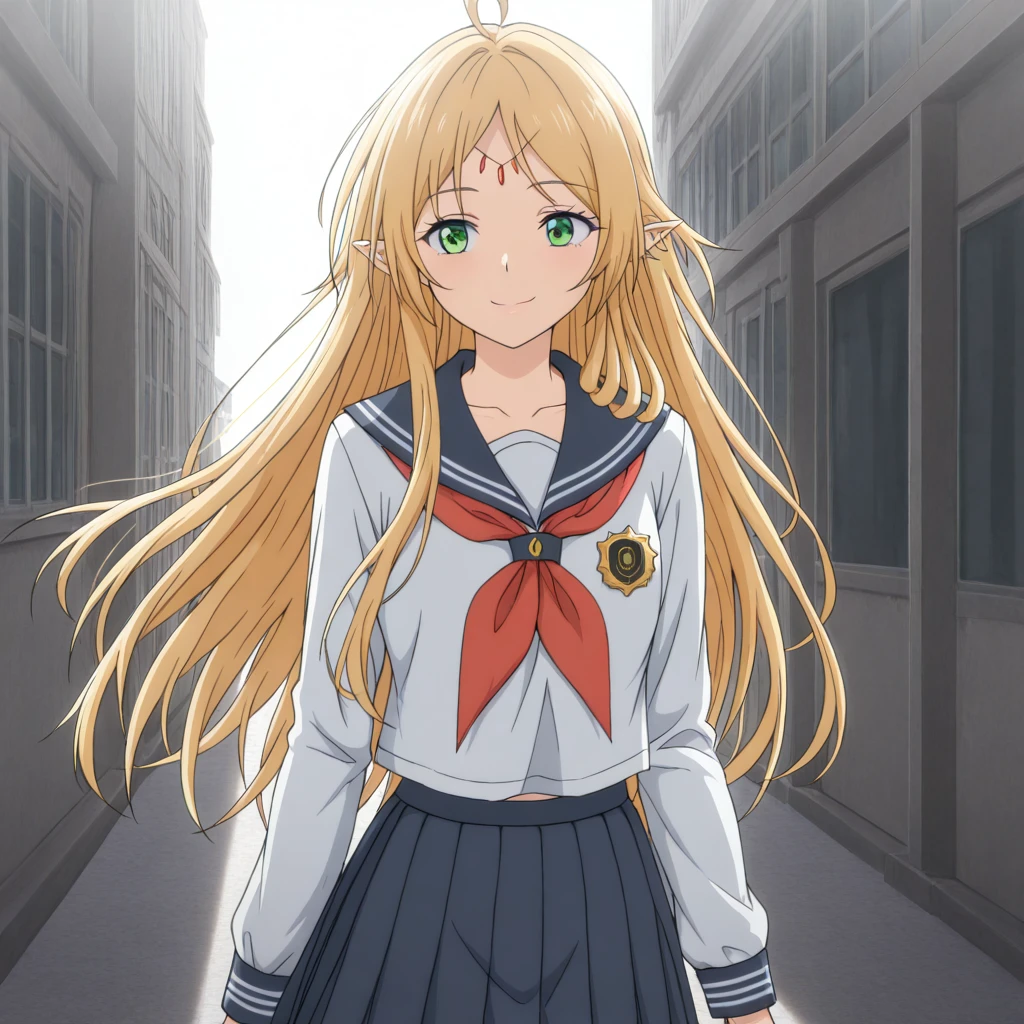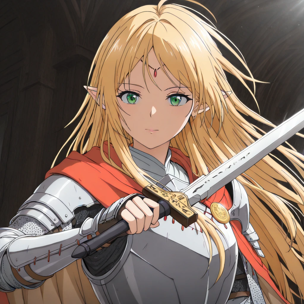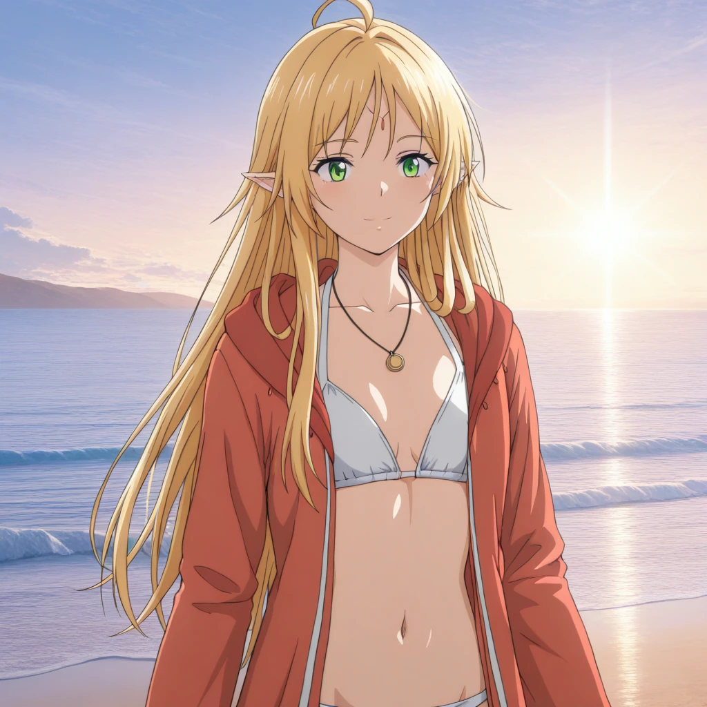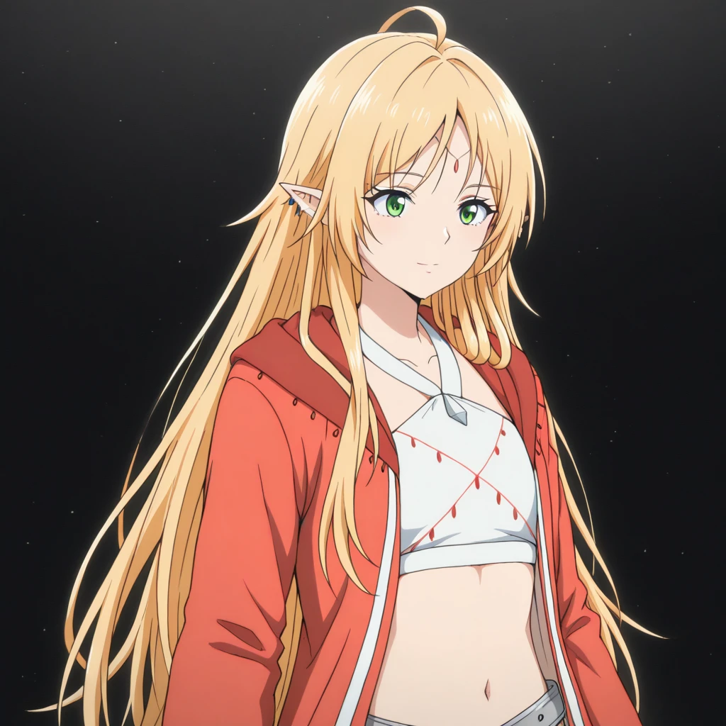 Trigger: (BroliteGatherer, green eyes, blonde hair, long hair, bangs, pointy ears)