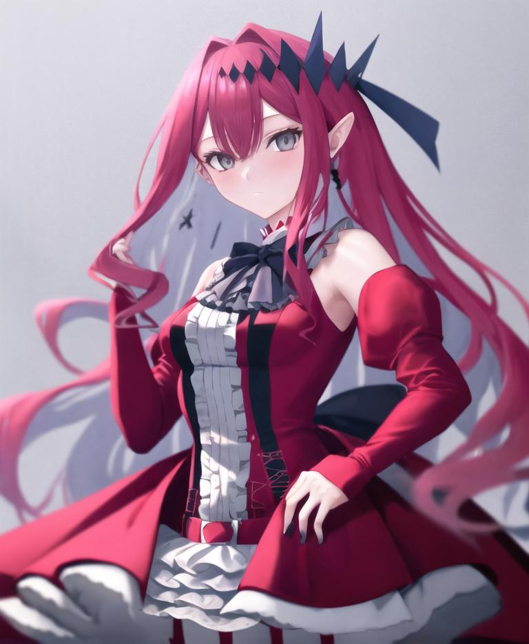 Additionally, regarding the main LORA, I also advise you to exclude any unused outfit tokens in the negatives prompt, because sometimes just one tag (like grey skin) might cause it to jumble up the clothes and give you some kind of amalgamation.
