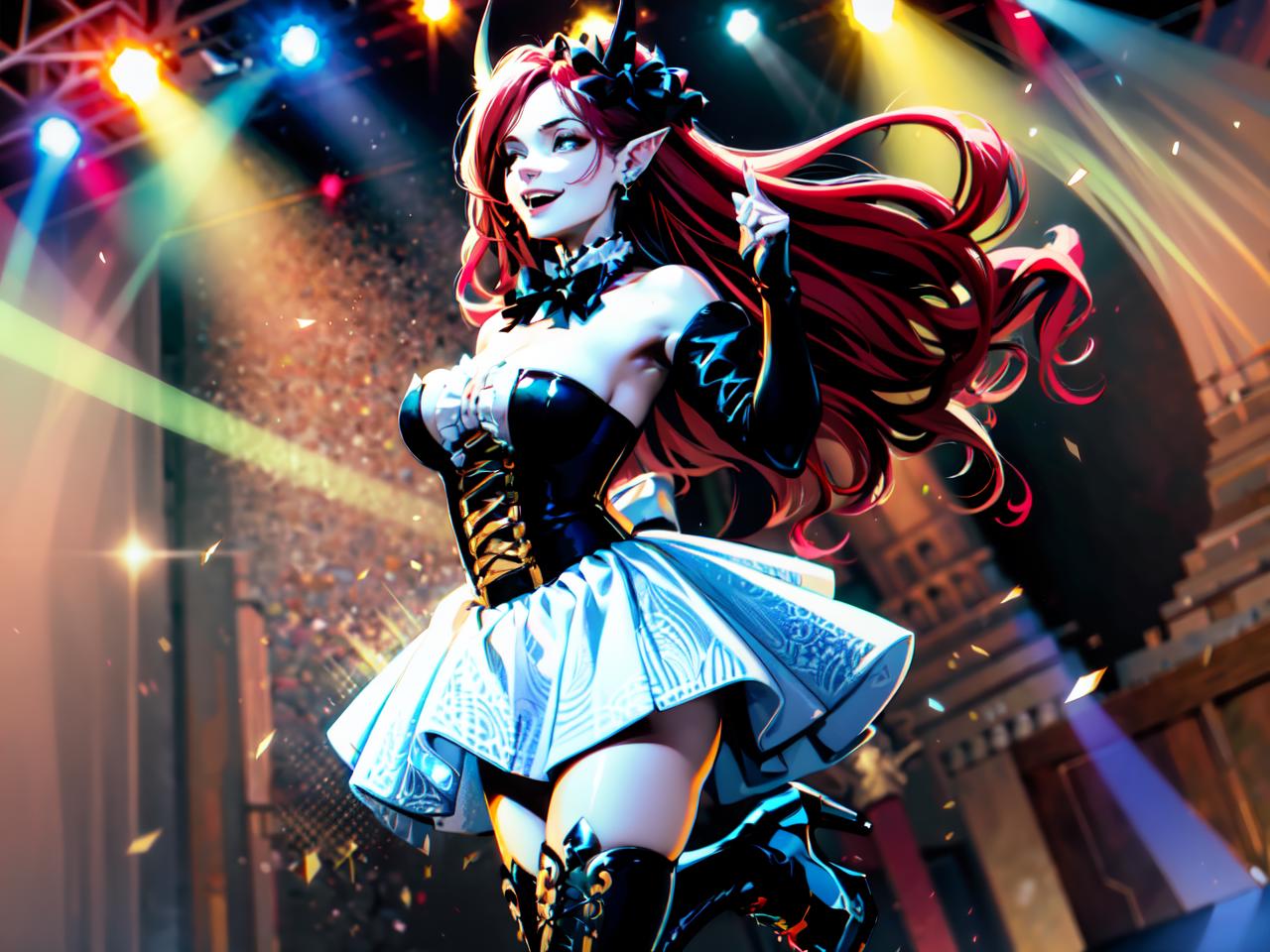 Her first outfit sometimes gives her the headpiece from 2nd asc, just put "black headpiece" in the negs to fix that.