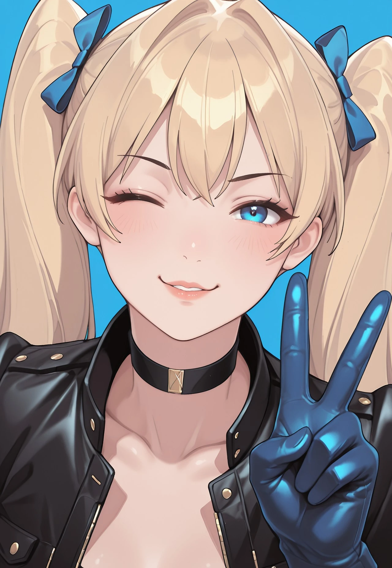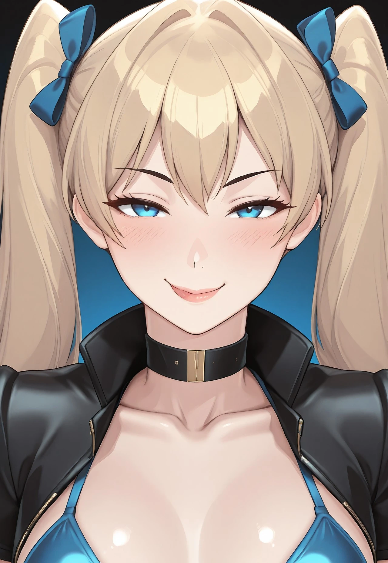 TOTLily, 1girl, solo, blonde_hair, long_hair, twin_tails, hair_bow, blue_bow, blue_eyes,