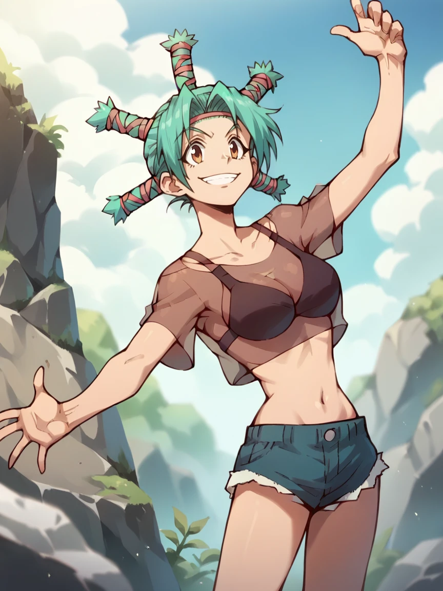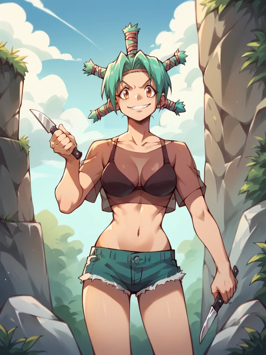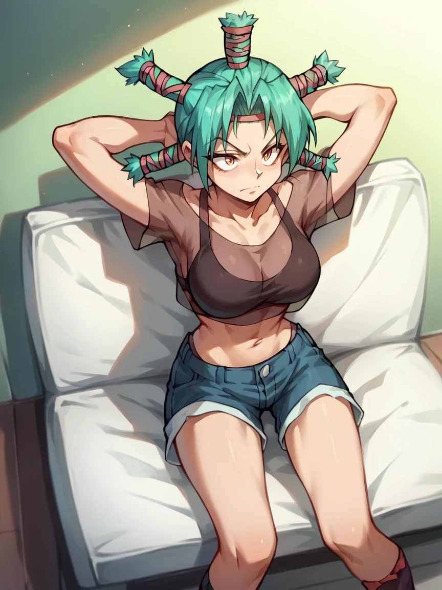 Menchi, shorts, bra