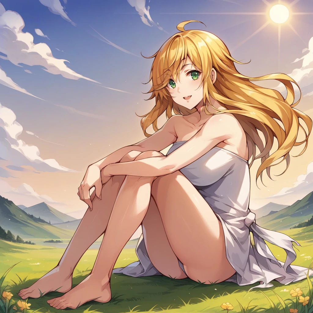 Marie, blonde hair, green eyes, long hair, scar on neck,Optional: Add "hair over one eye" for her other appearance.