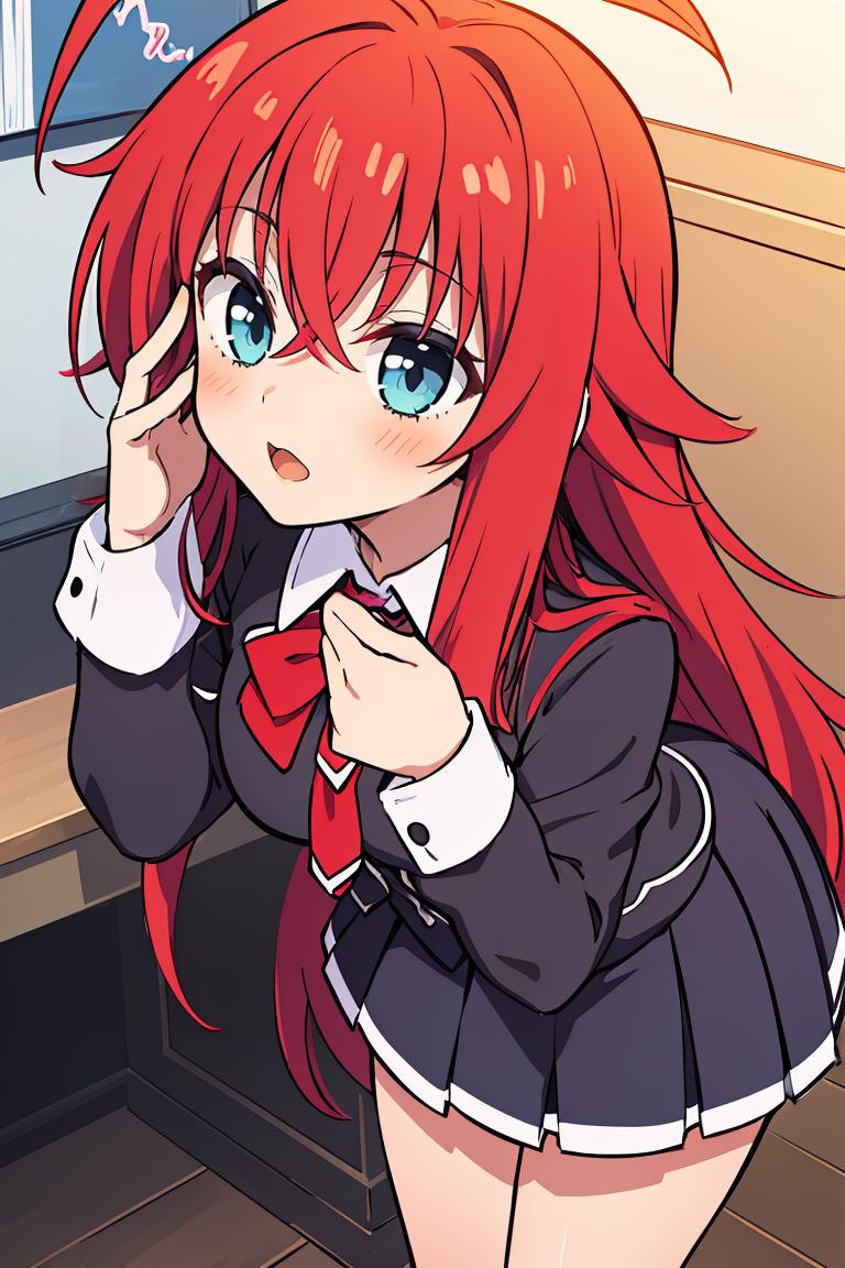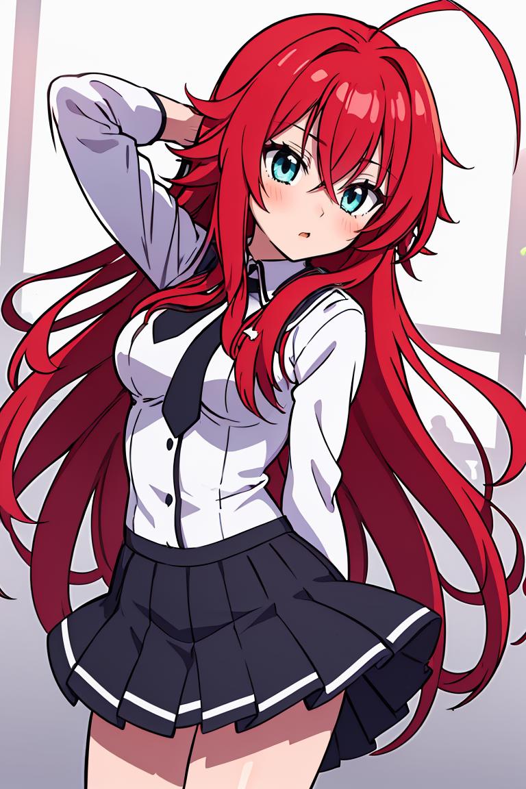 rias_gremory, long hair, ahoge, hair between eyes, school uniform, pleated skirt,