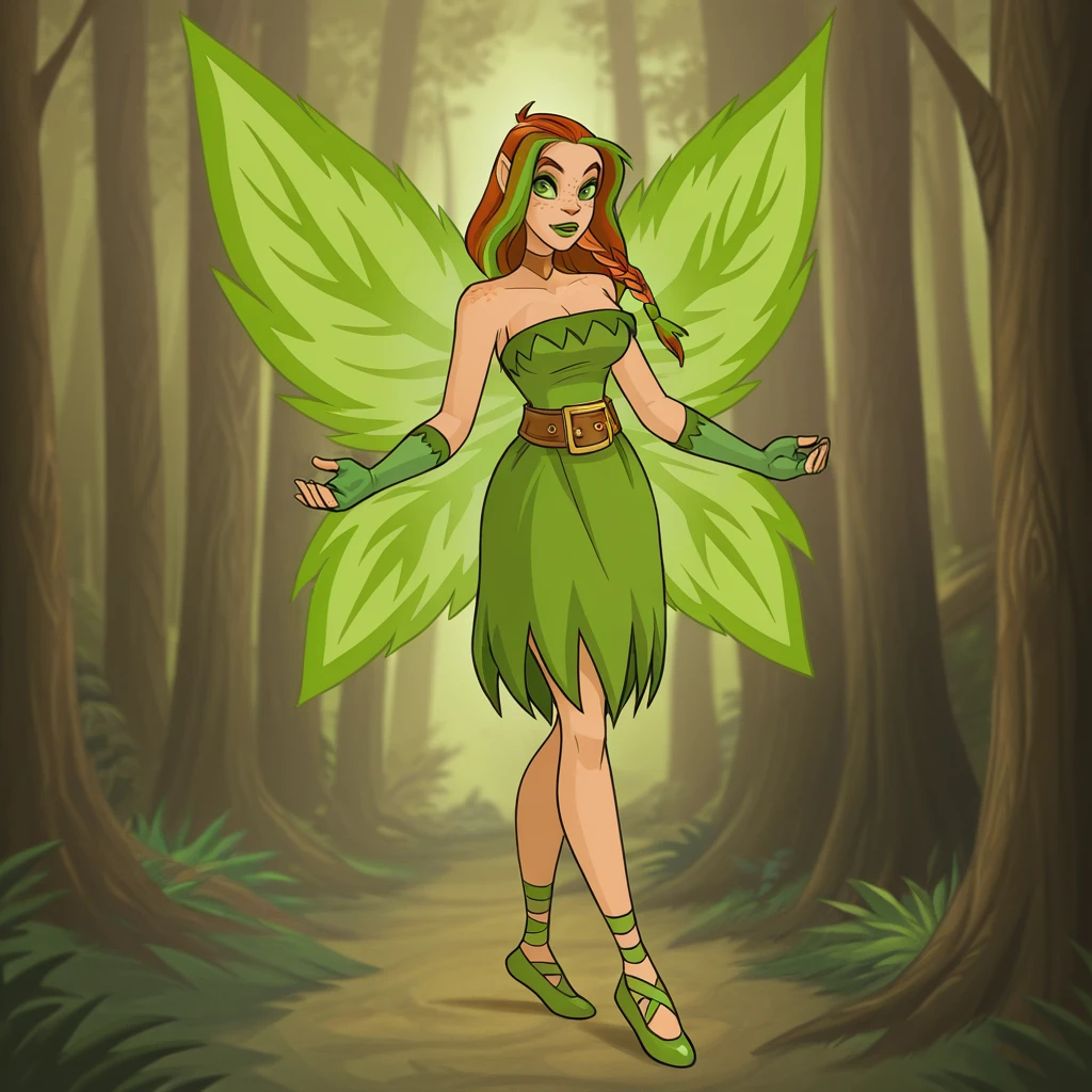 fingerless gloves, green dress, belt, ballet shoes, official art,