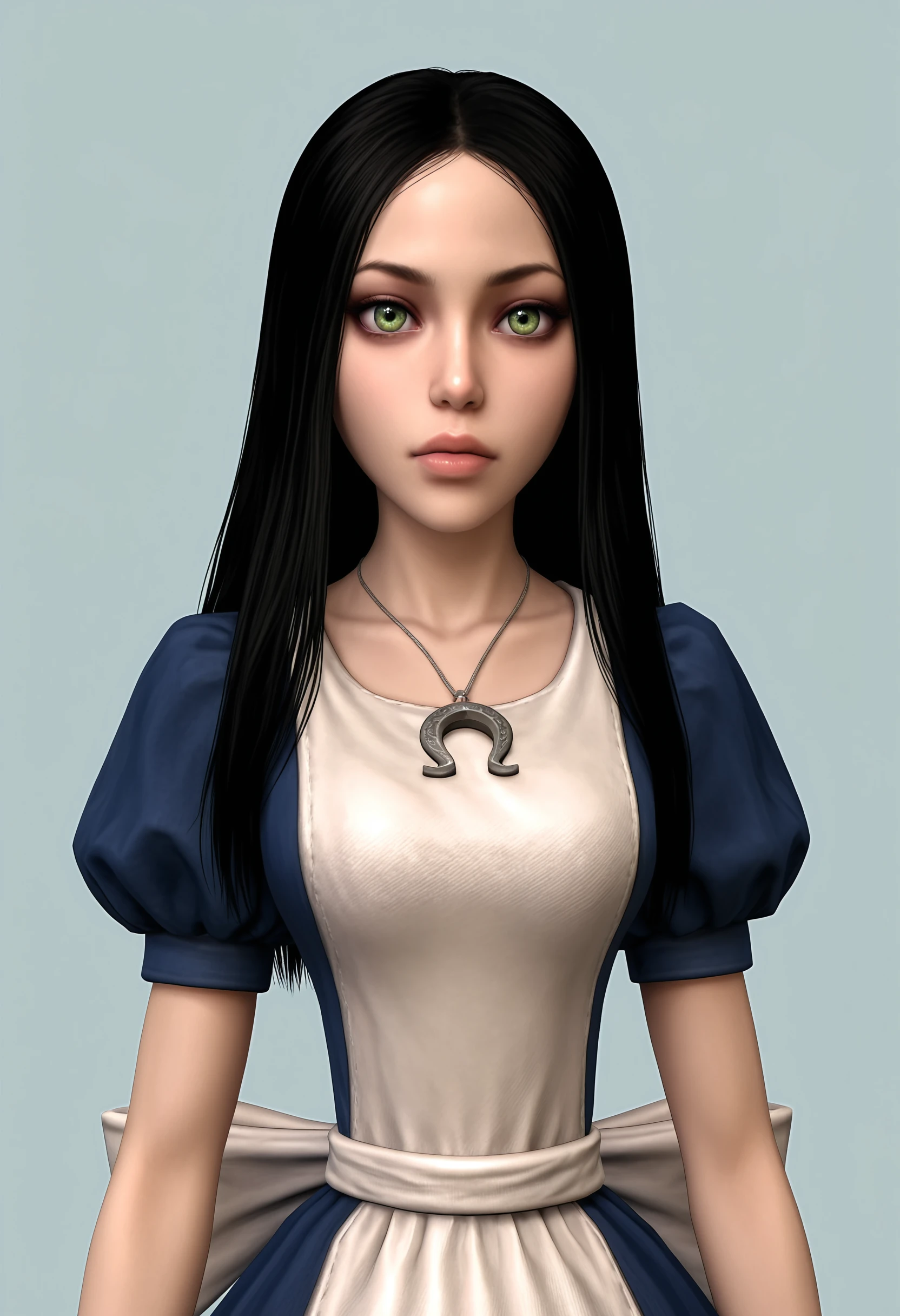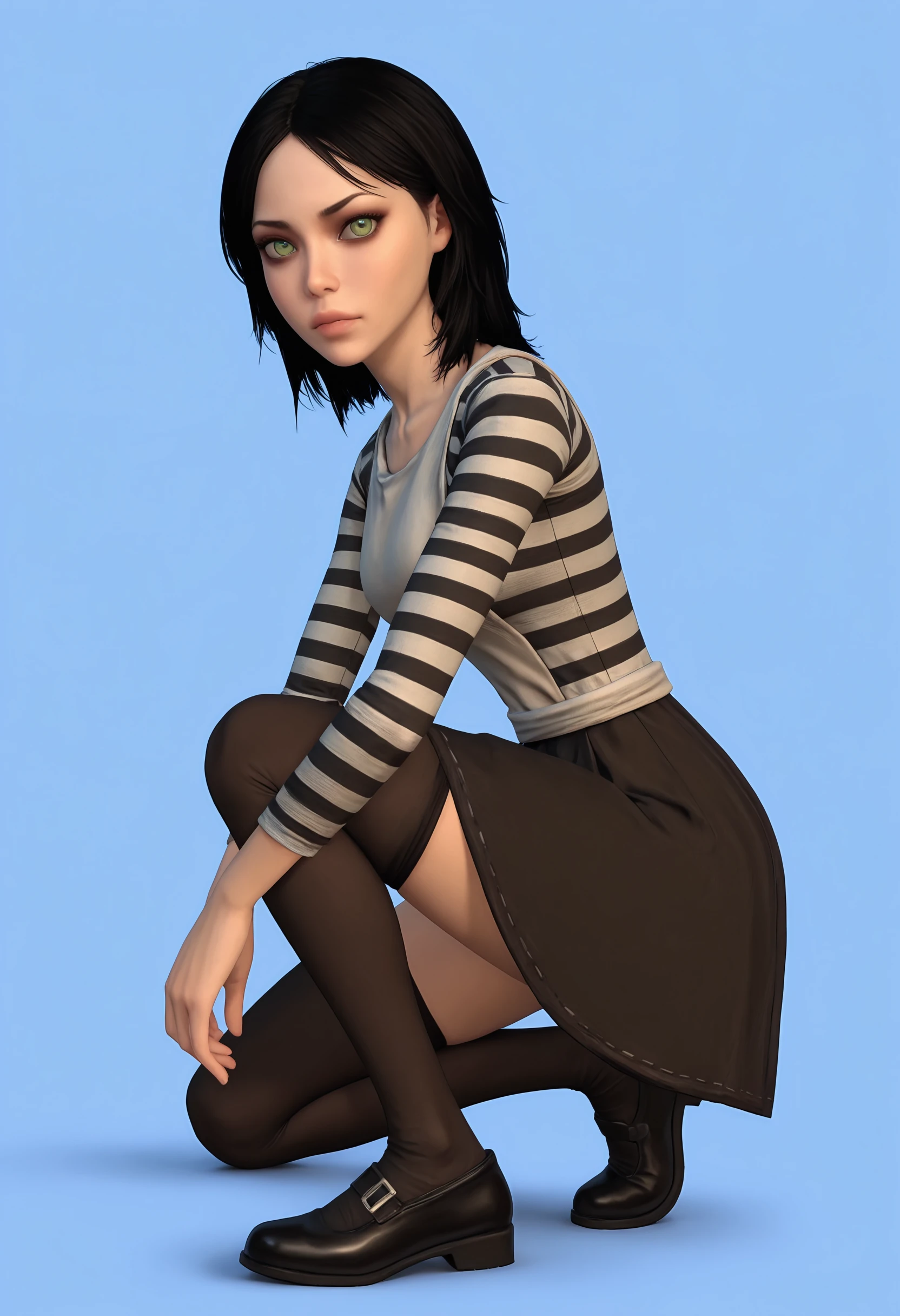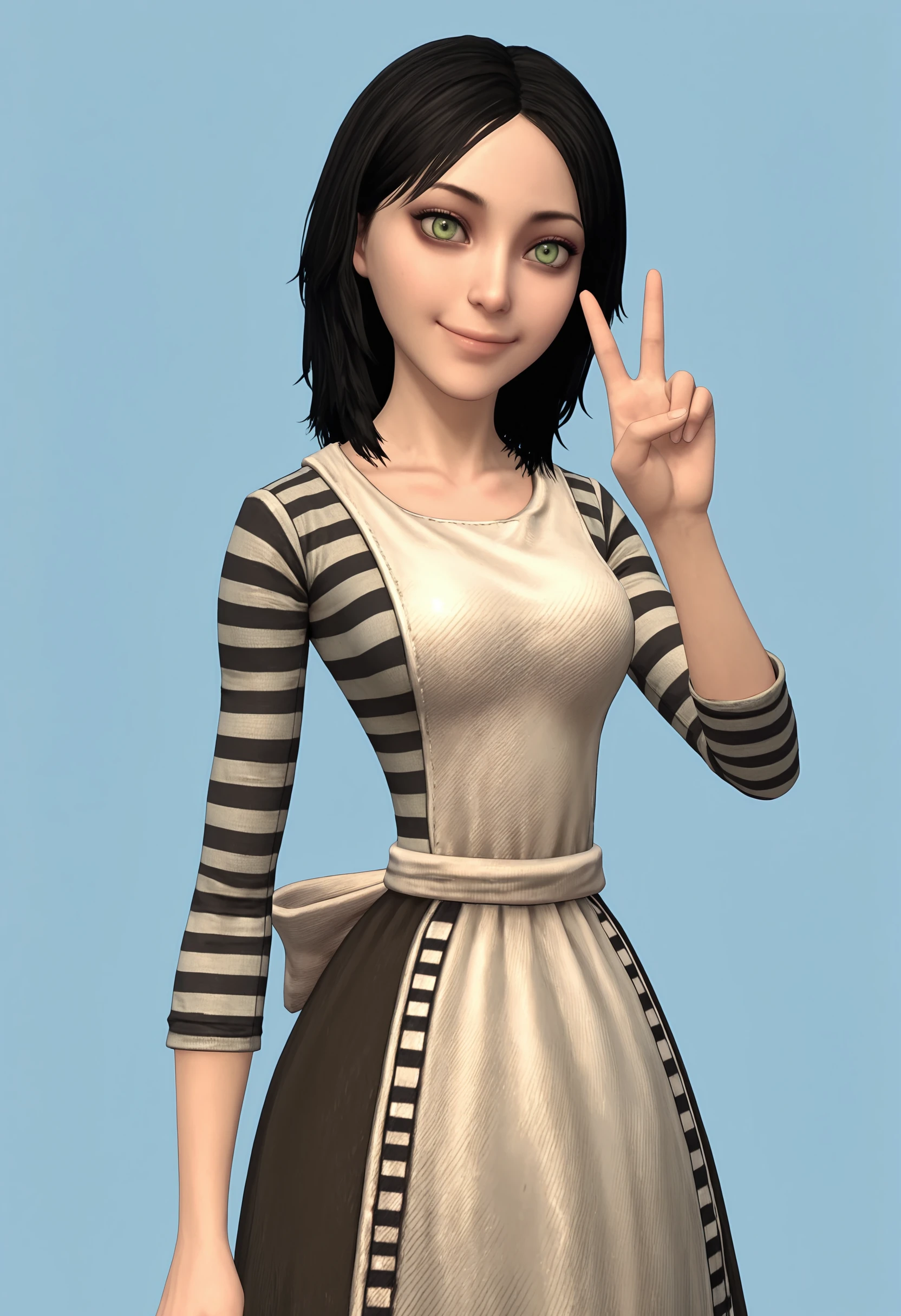 • Alice: alic1, green eyes, long hair, necklace, dress, apron, striped thighhighs, boots