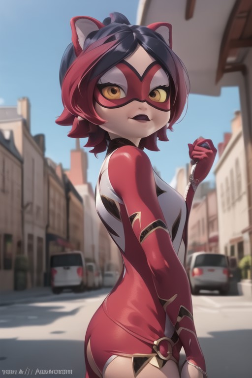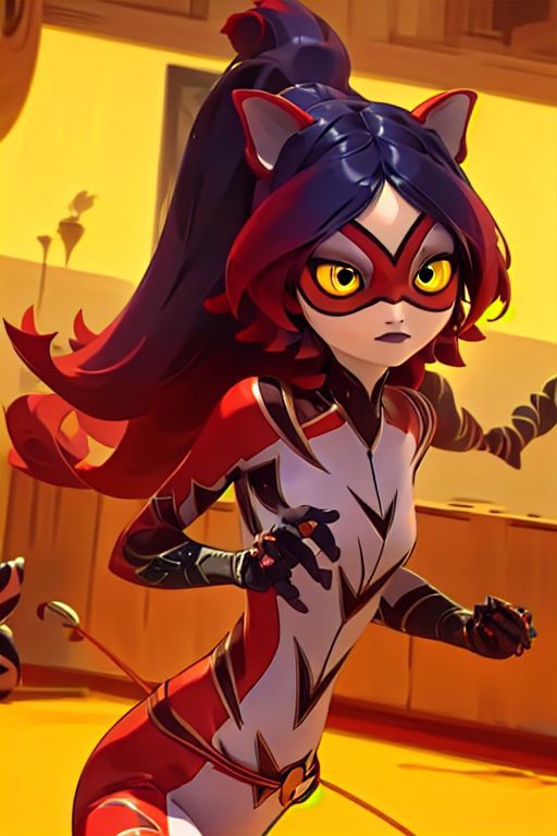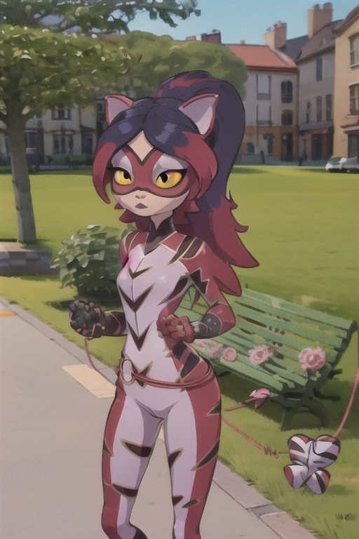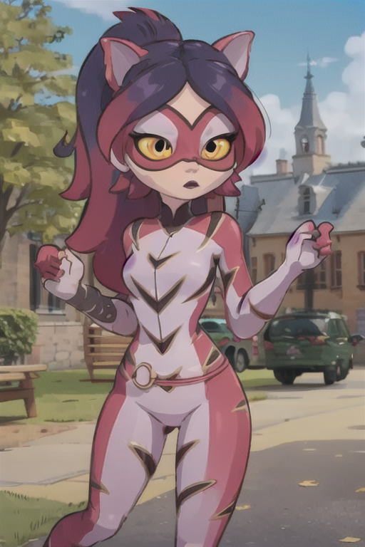purptig, animal ears, bodysuit, yellow eyes, cat ears, long hair