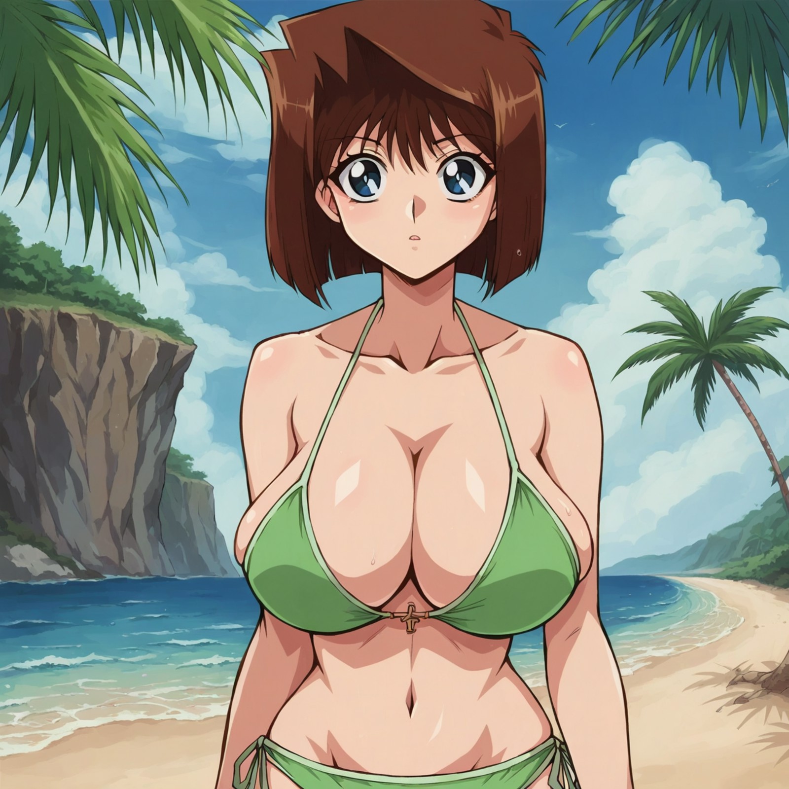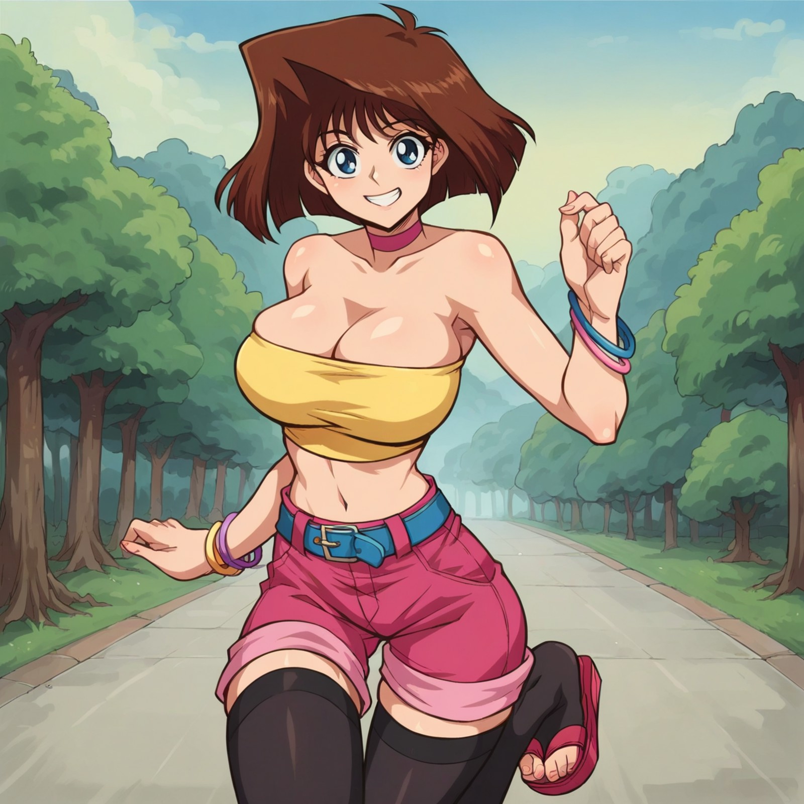 anzu_mazaki, brown hair, short hair, blue eyes, large breasts, curvy, voluptuous