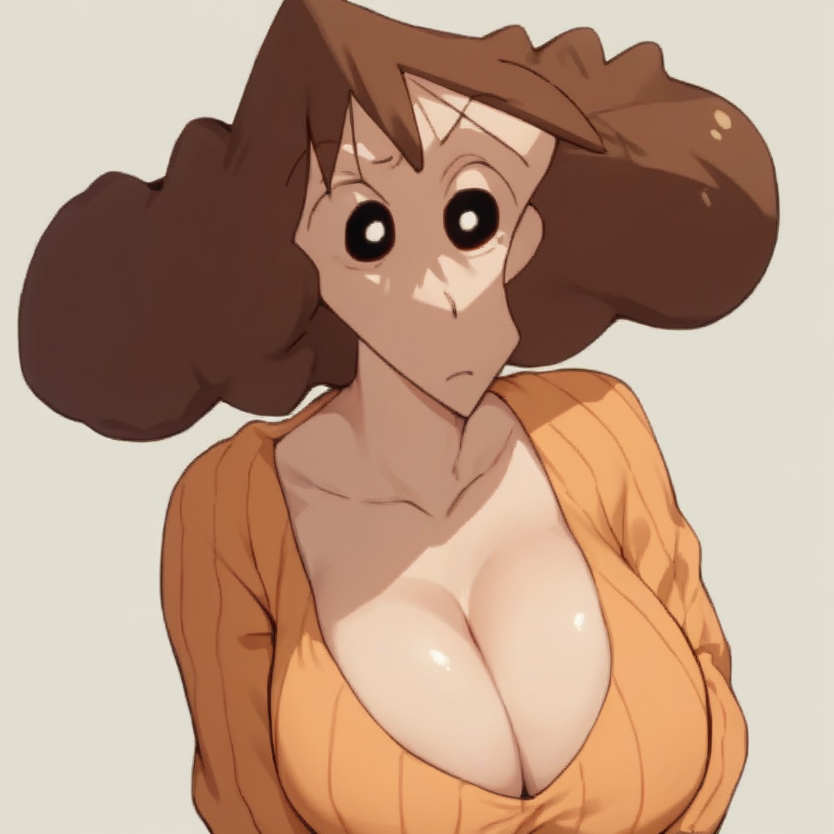 nohara misae, brown hair, perma hair