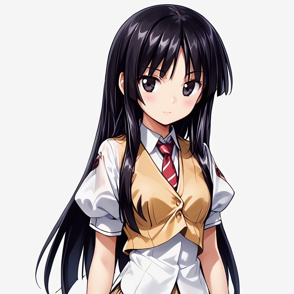 3nah1me, thighhighs, necktie, skirt, school uniform, black hair, black eyes,
