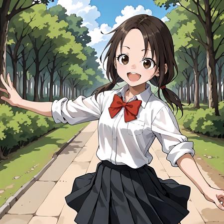 AkaneNagisa,1girl,black brown hair,low twintails,forehead,brown eyes,
