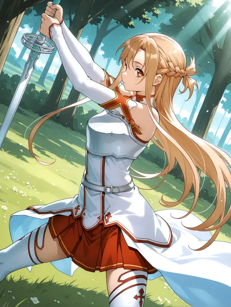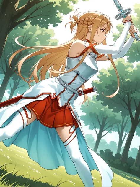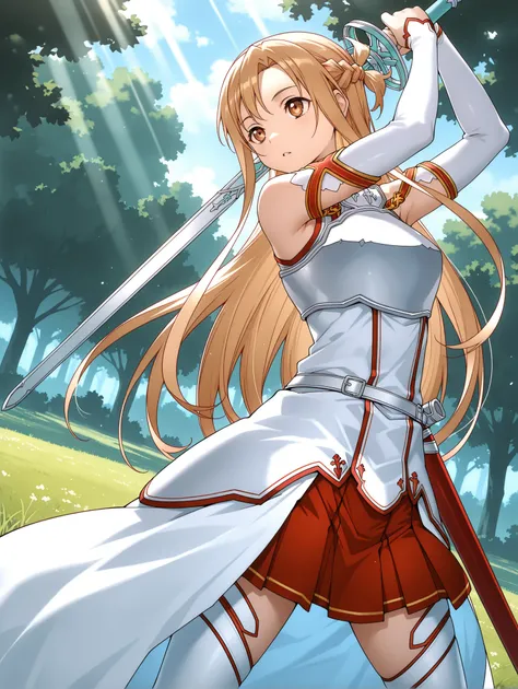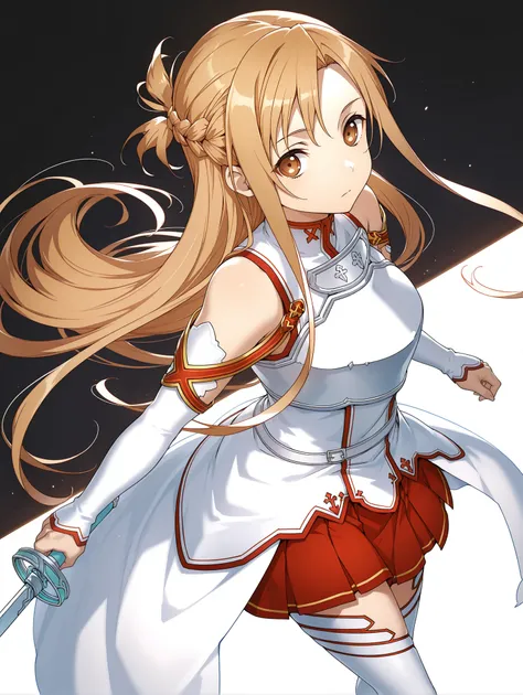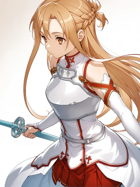 a_clothes,bare shoulders,long_sleeves,armor,red skirt,