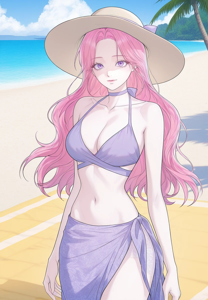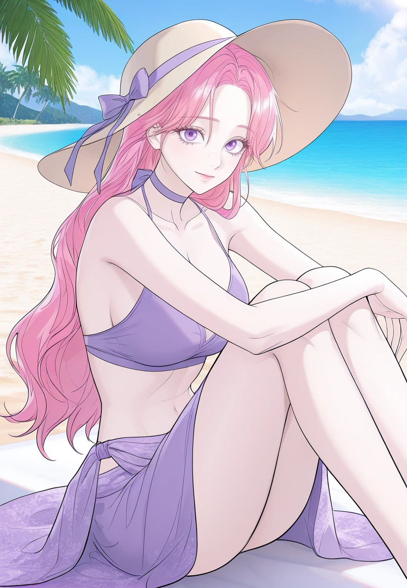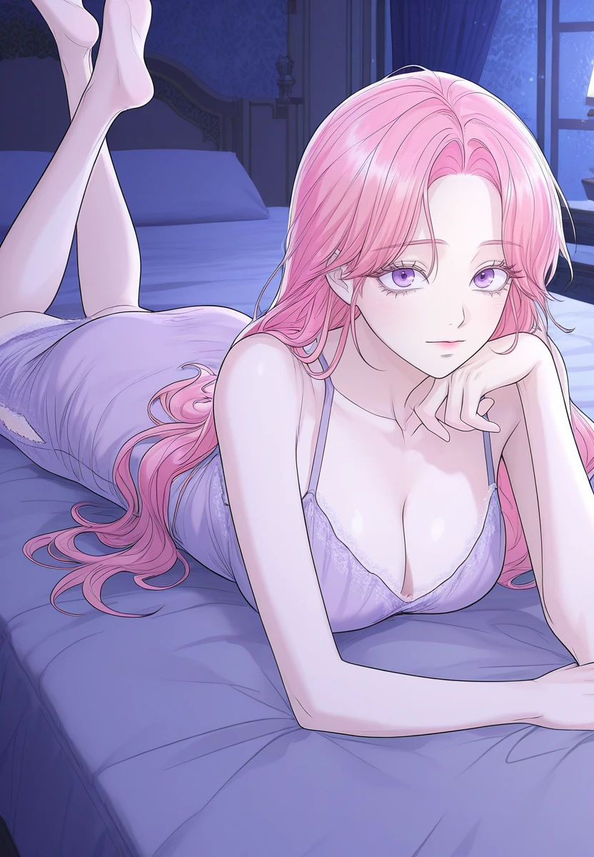 /larietteblanche/, 1girl, pink hair, purple eyes, long hair,