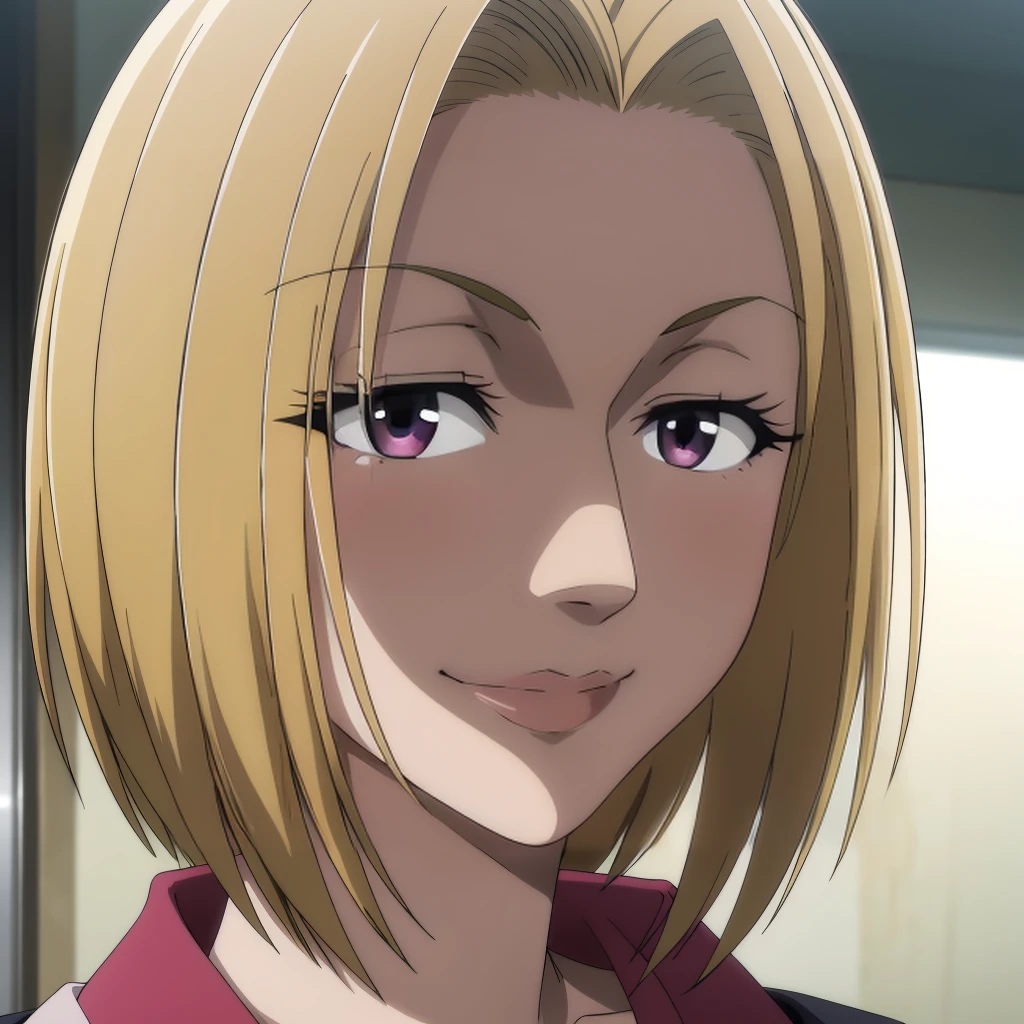 blonde hair, short hair, brown eyes,