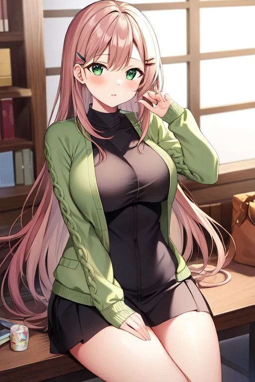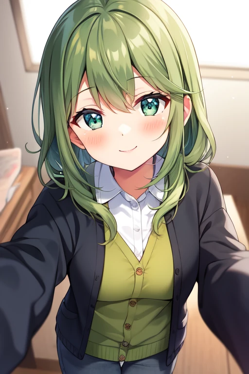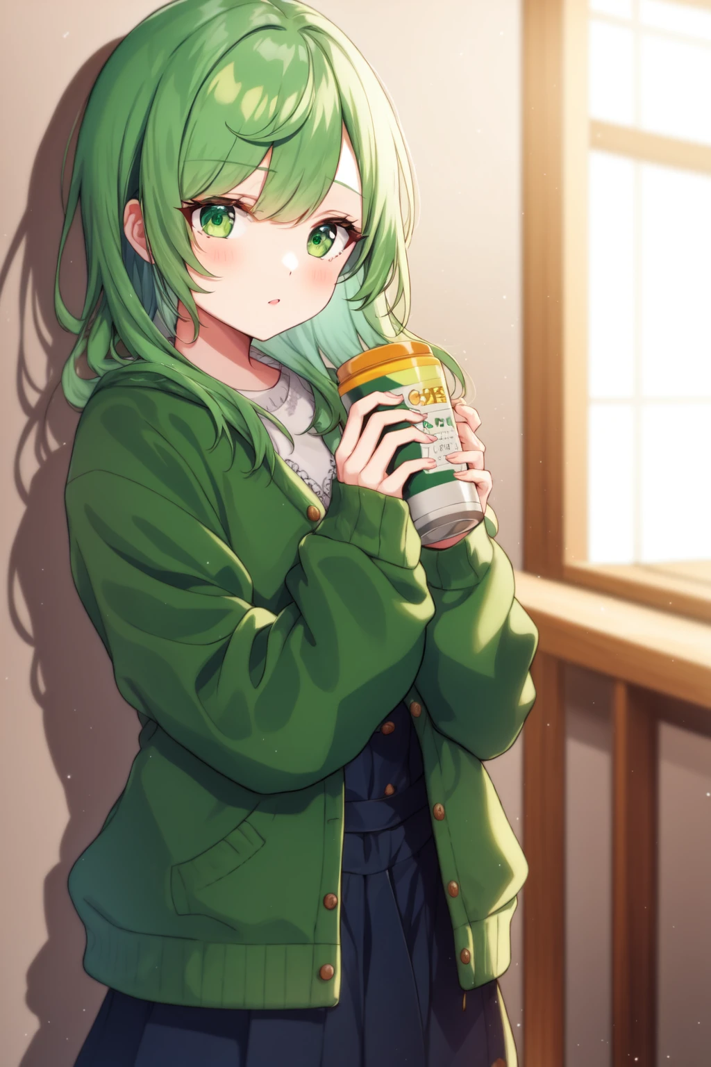 green cardigan