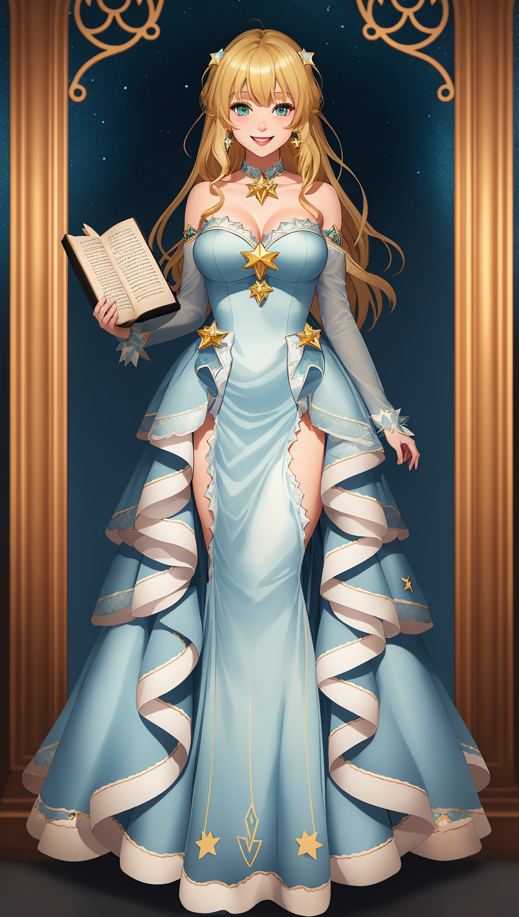 Neg prompt : (worst quality, low quality:1.4), border, frame, (large breasts:1.4), watermark, signature bad eyes , bad hands, asymmetrical, complex background , black background, extra fingers