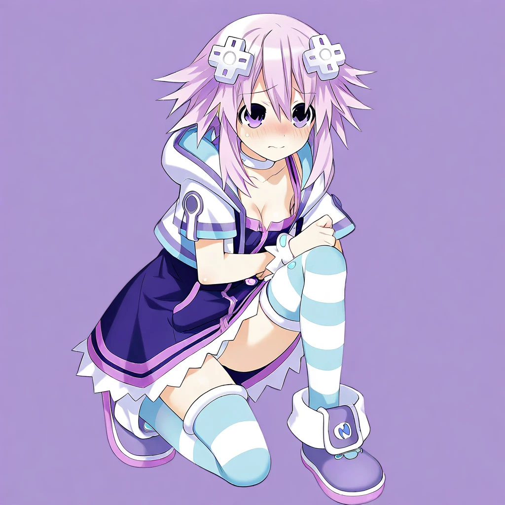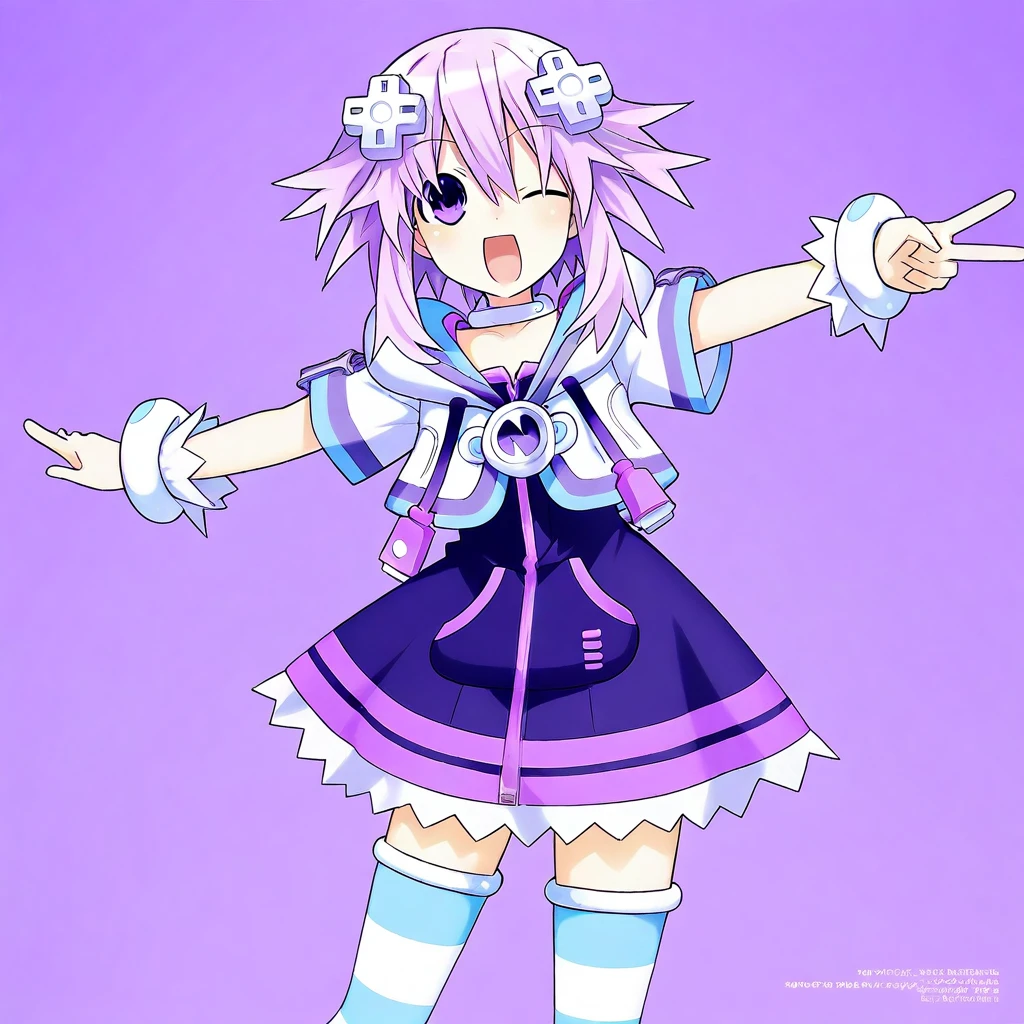 Trigger: neptune (neptunia), 1girl, solo, purple hair, short hair, d-pad, hair ornament,