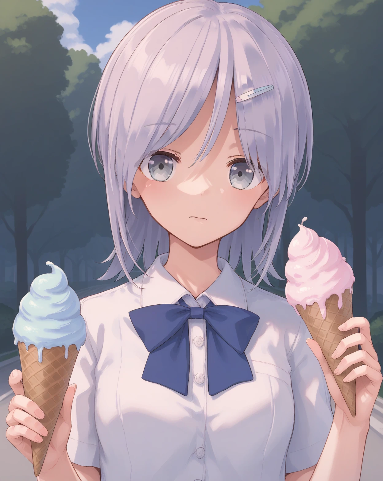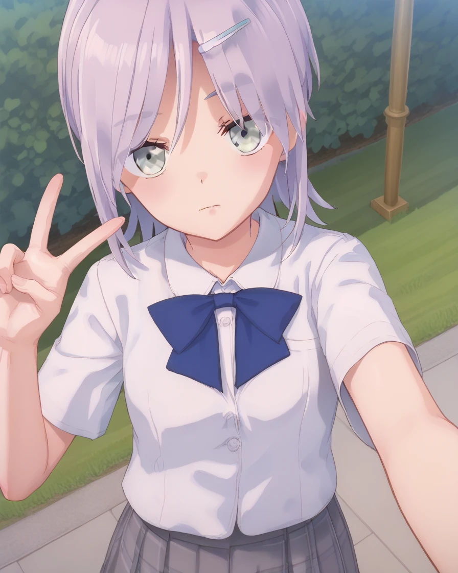 trigger: ShionNanase,light purple hair,grey eyes,17yo,medium hair,medium breasts,