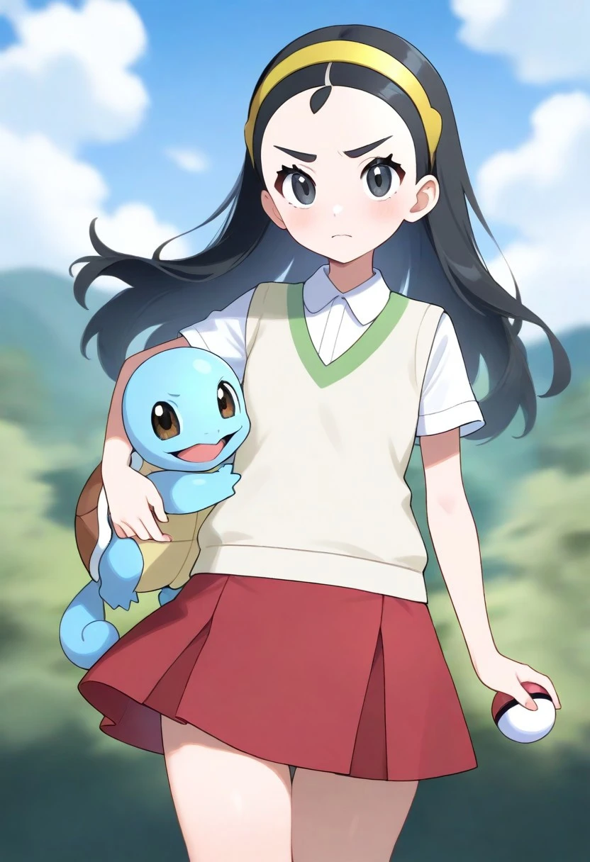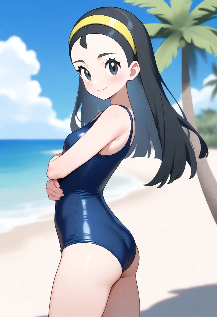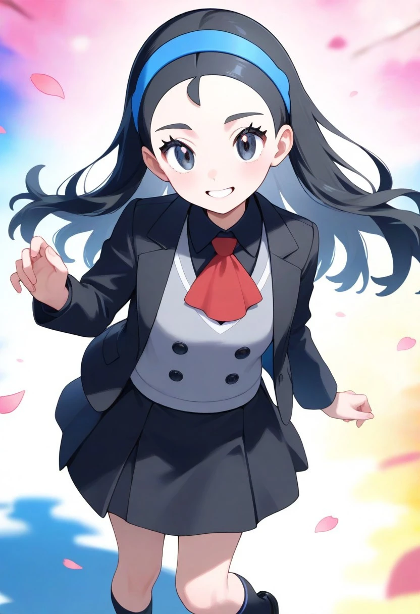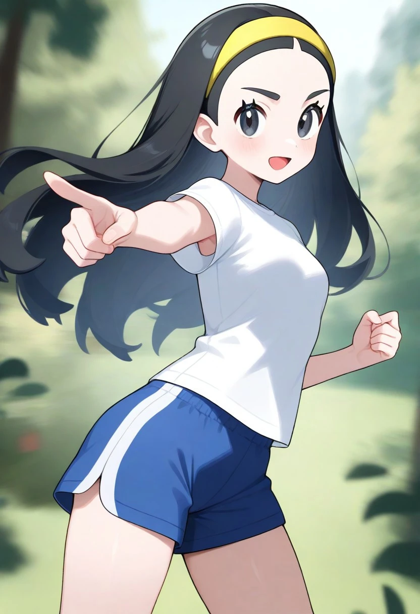 -senpai, long hair, black hair, black eyes, yellow hairband, 1girl, solo, small breasts,