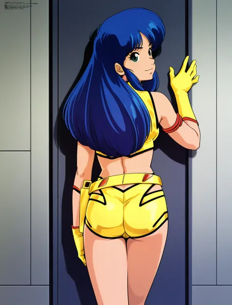 nai_v4_dirty_pair_yuri,blue hair,green eye,yellow shorts,