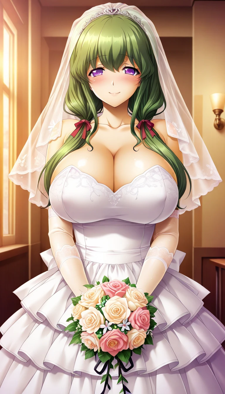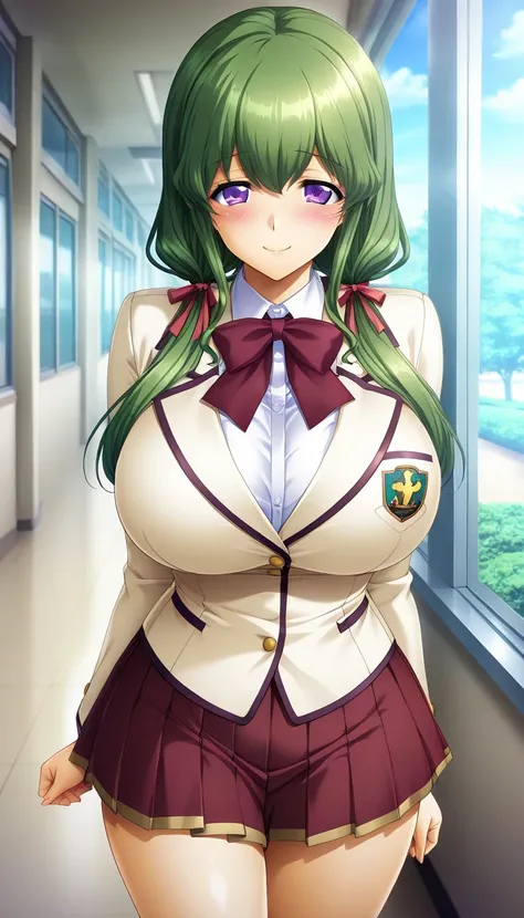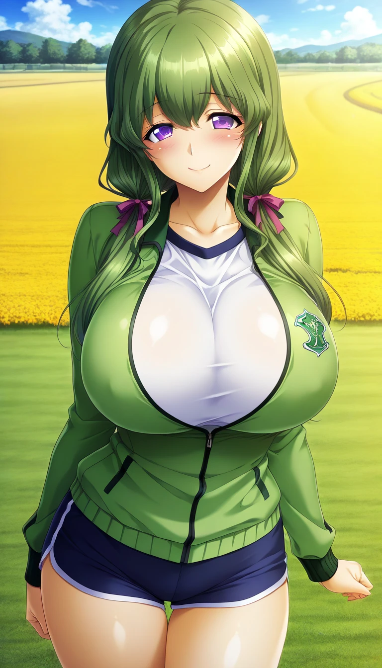Nitou Tomoe, green hair, twin tails, violet eyes