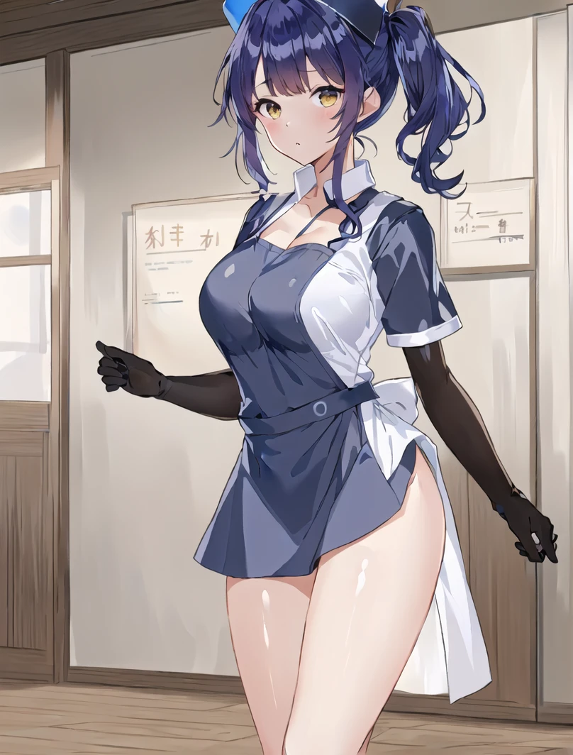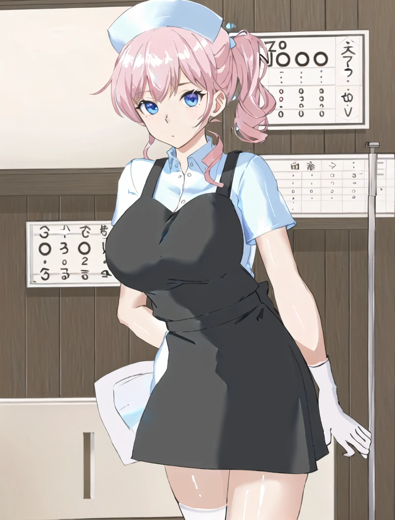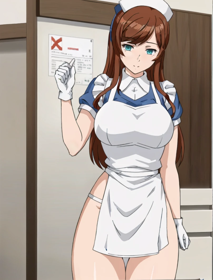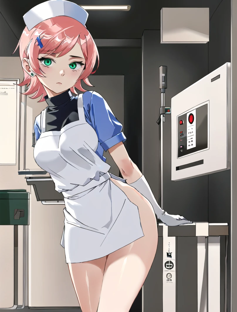 latex_nurse_v2, nurse, nurse cap, apron, gloves,shiny dress