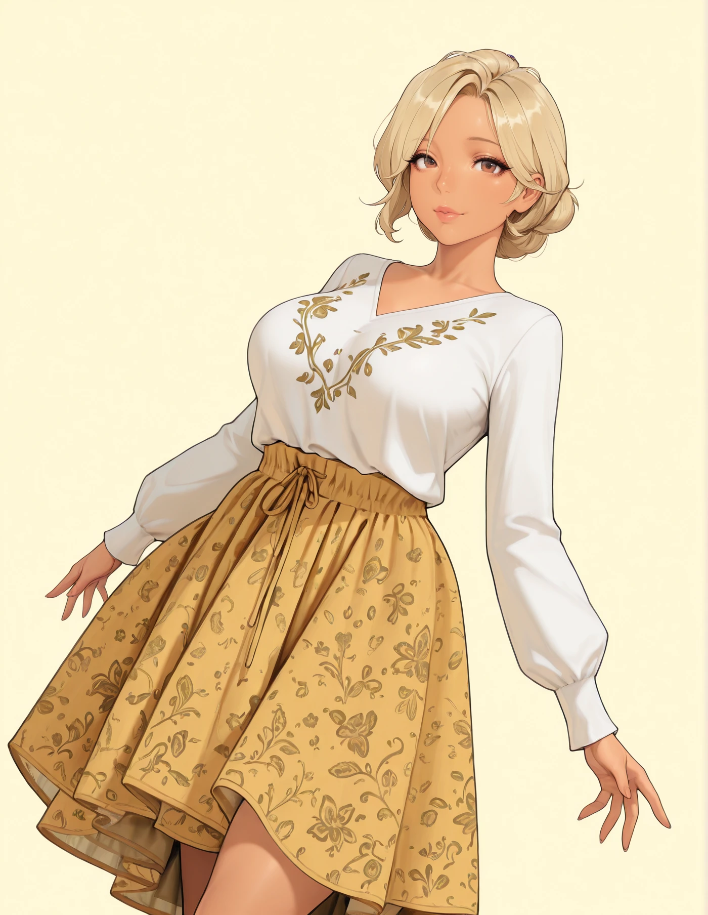 TAGS: shirt, long sleeves, layered skirt, floral print, (color) shirt, (color) skirt