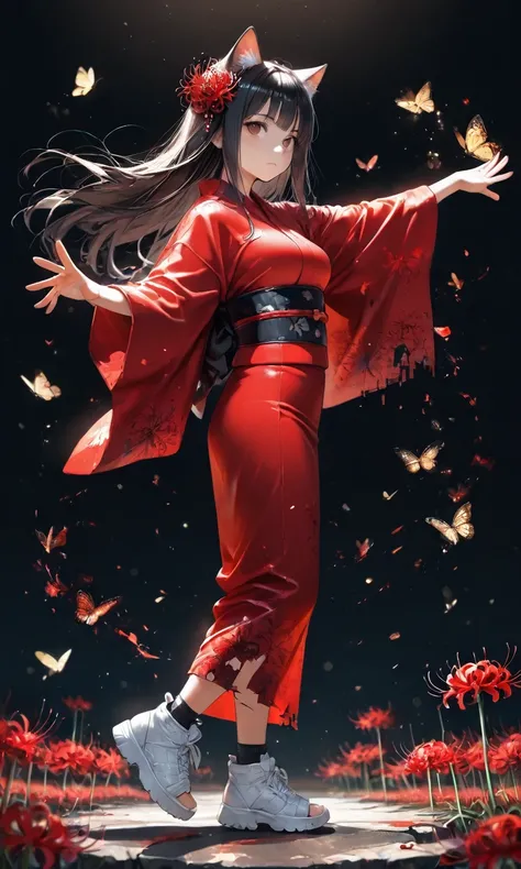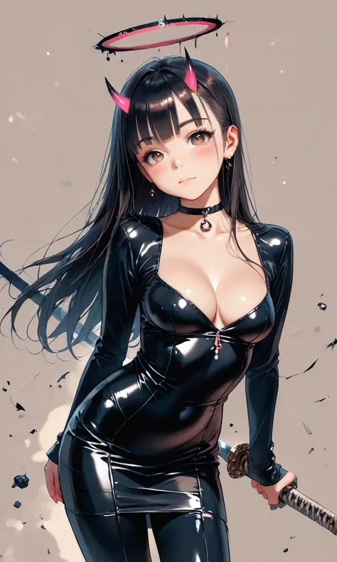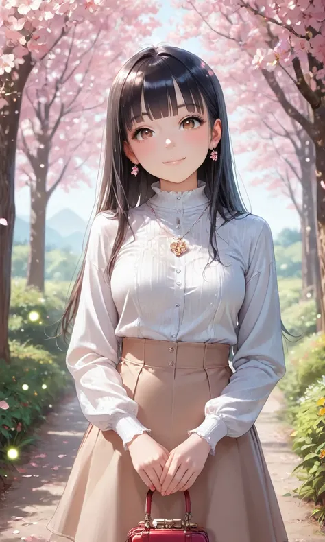 F1sh_P4ste, high gradient eyes, front view, standing, black_hair, long_hair, straight_hair, dark blue skirt, long skirt, pleated skirt, brown eyes, sweater, red sweater, long sleeves