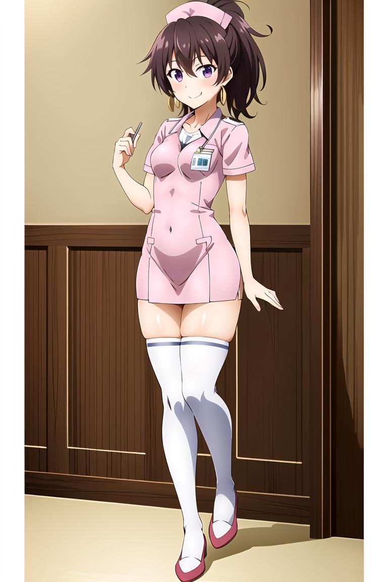 1girl, brown hair, ponytail,short hair, purple eyes