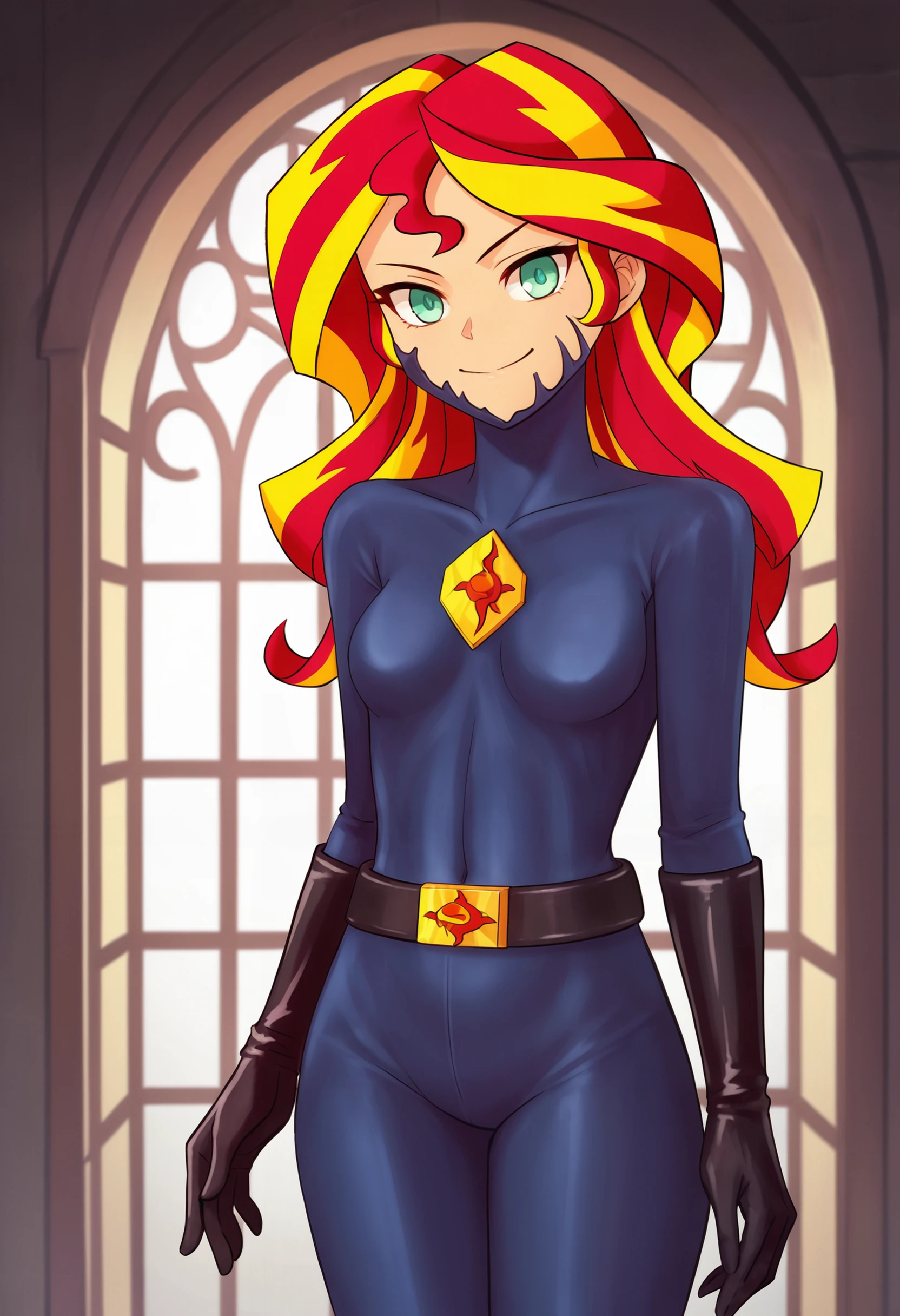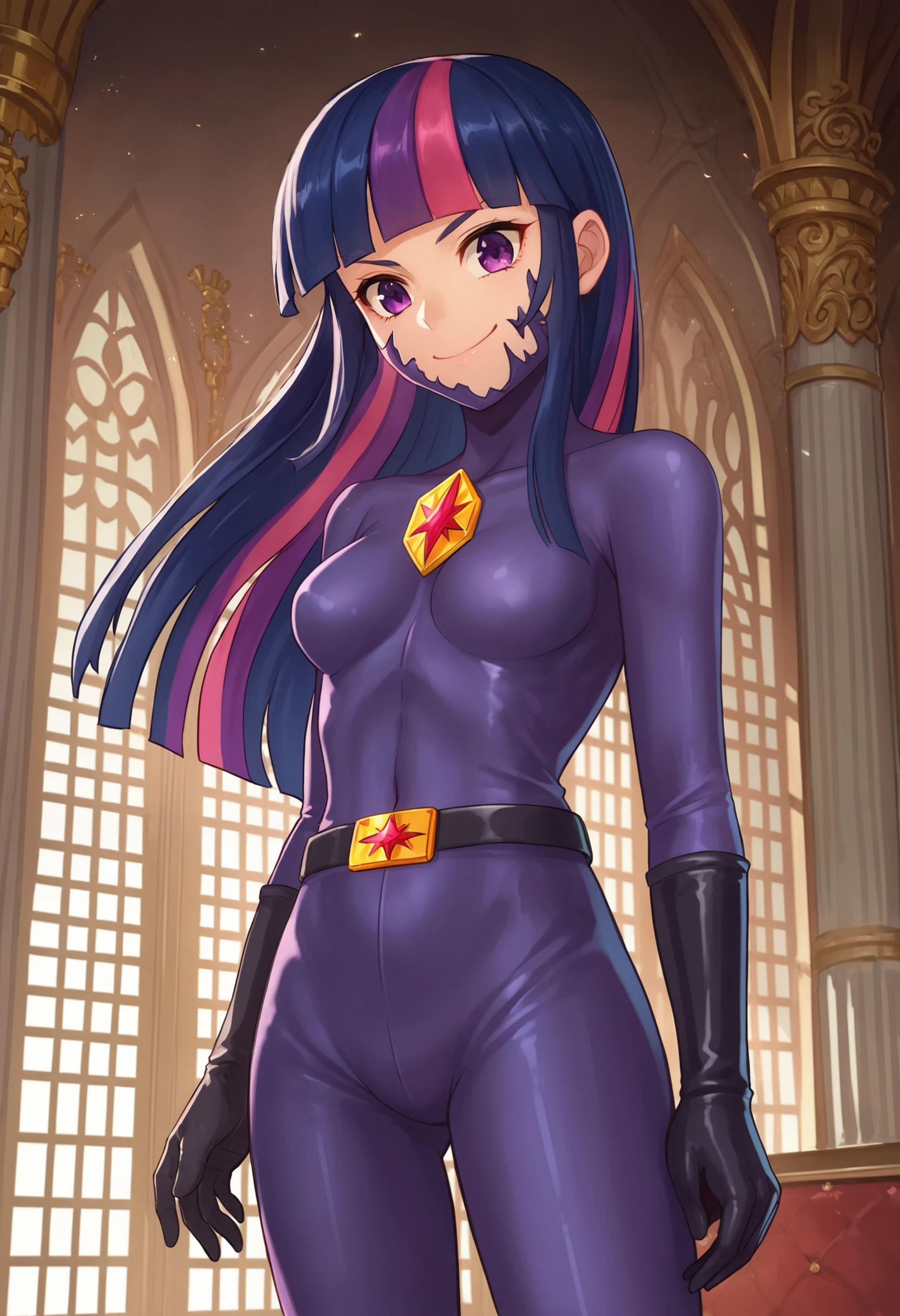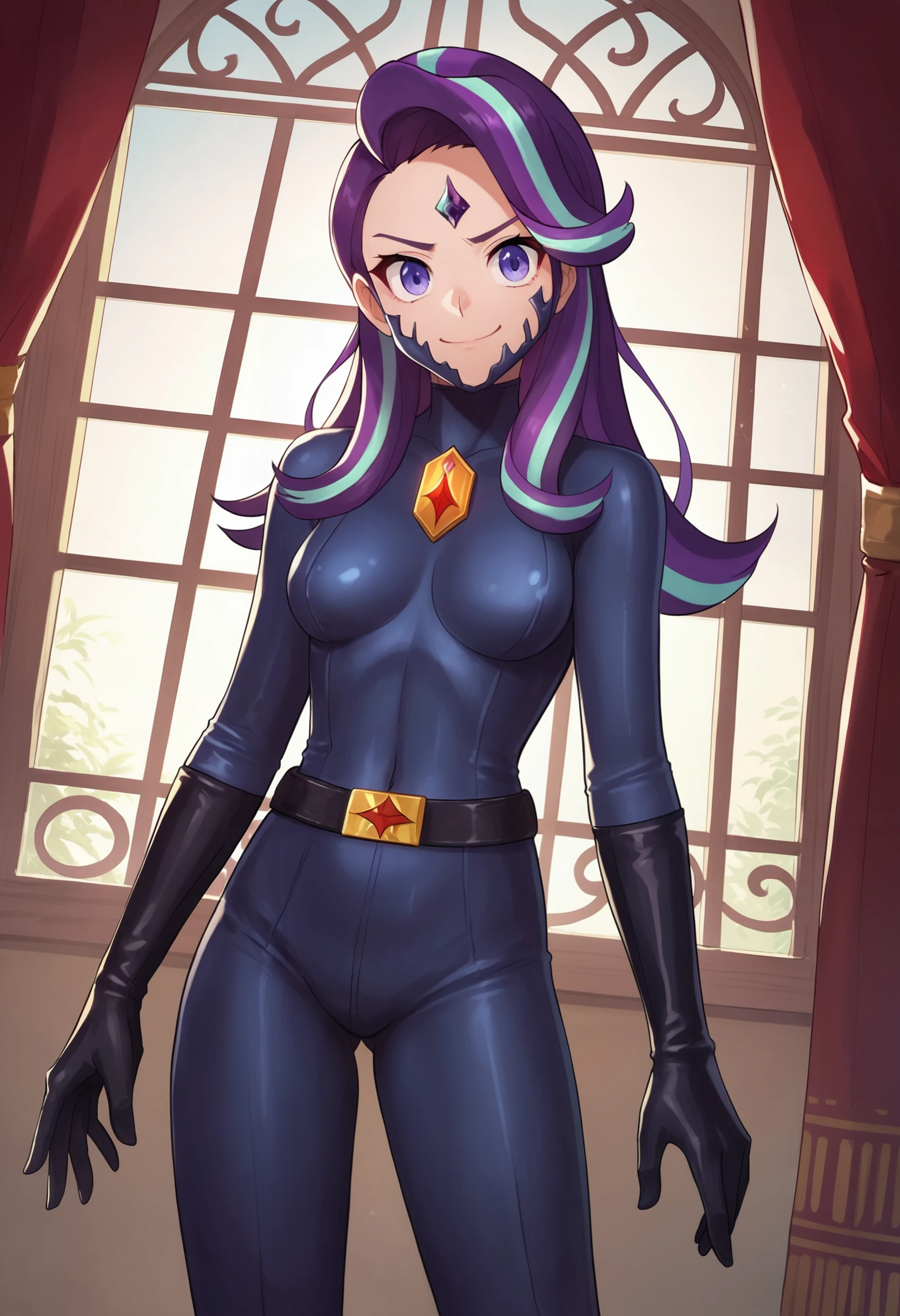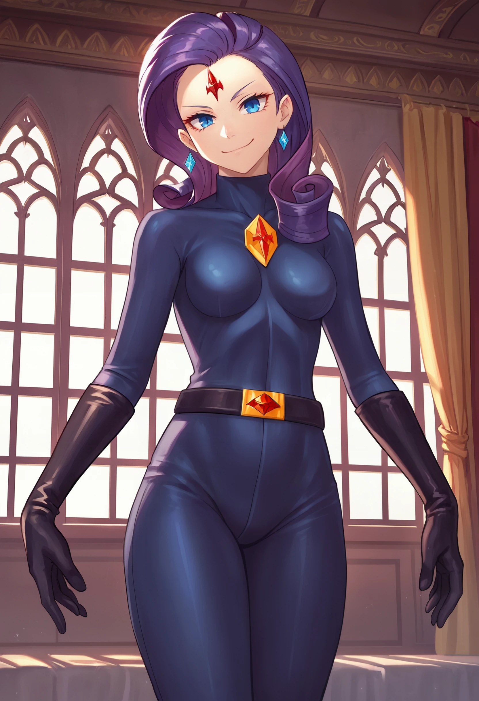 zofa belt, chest jewel, forehead mark, black gloves, black boots