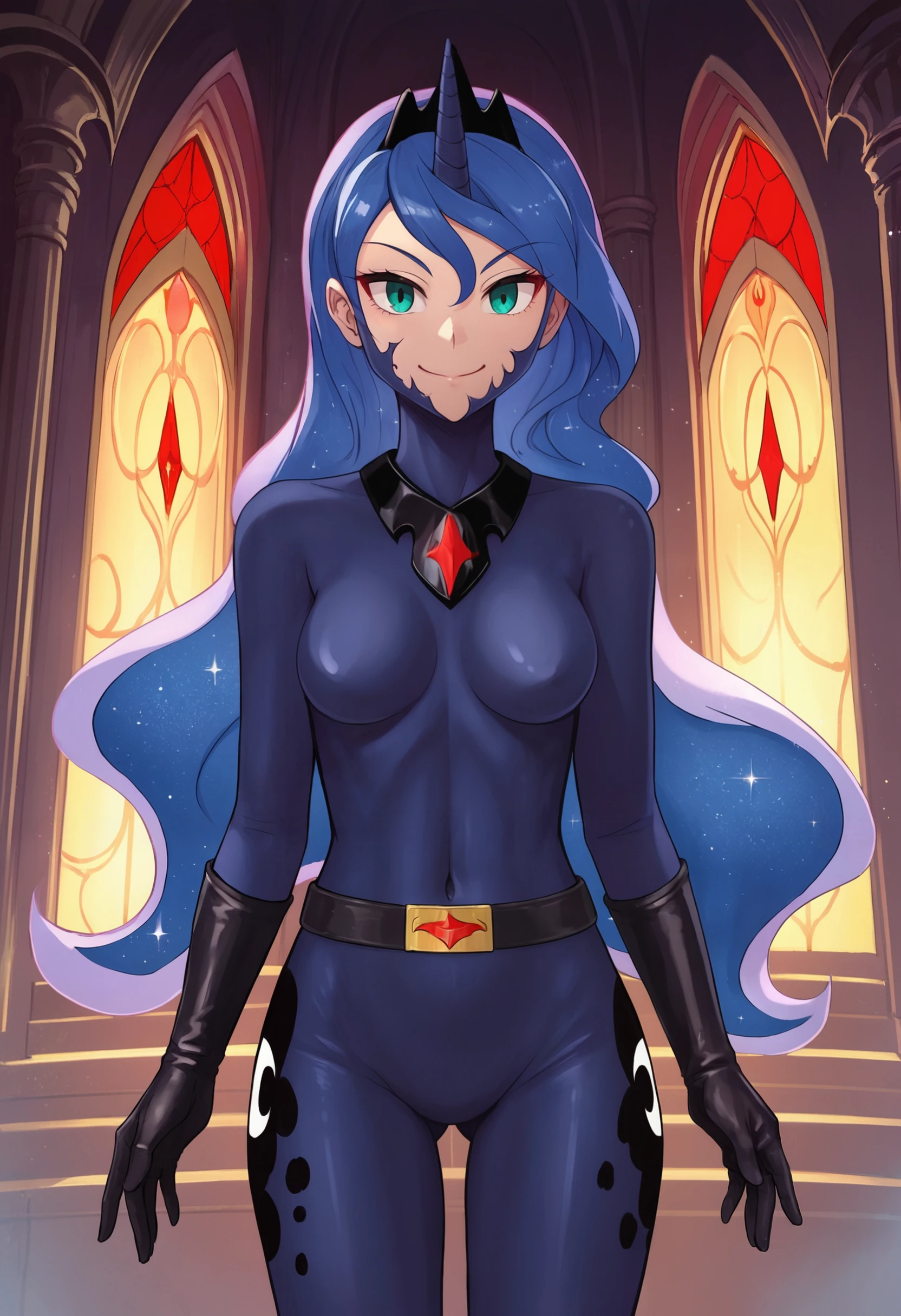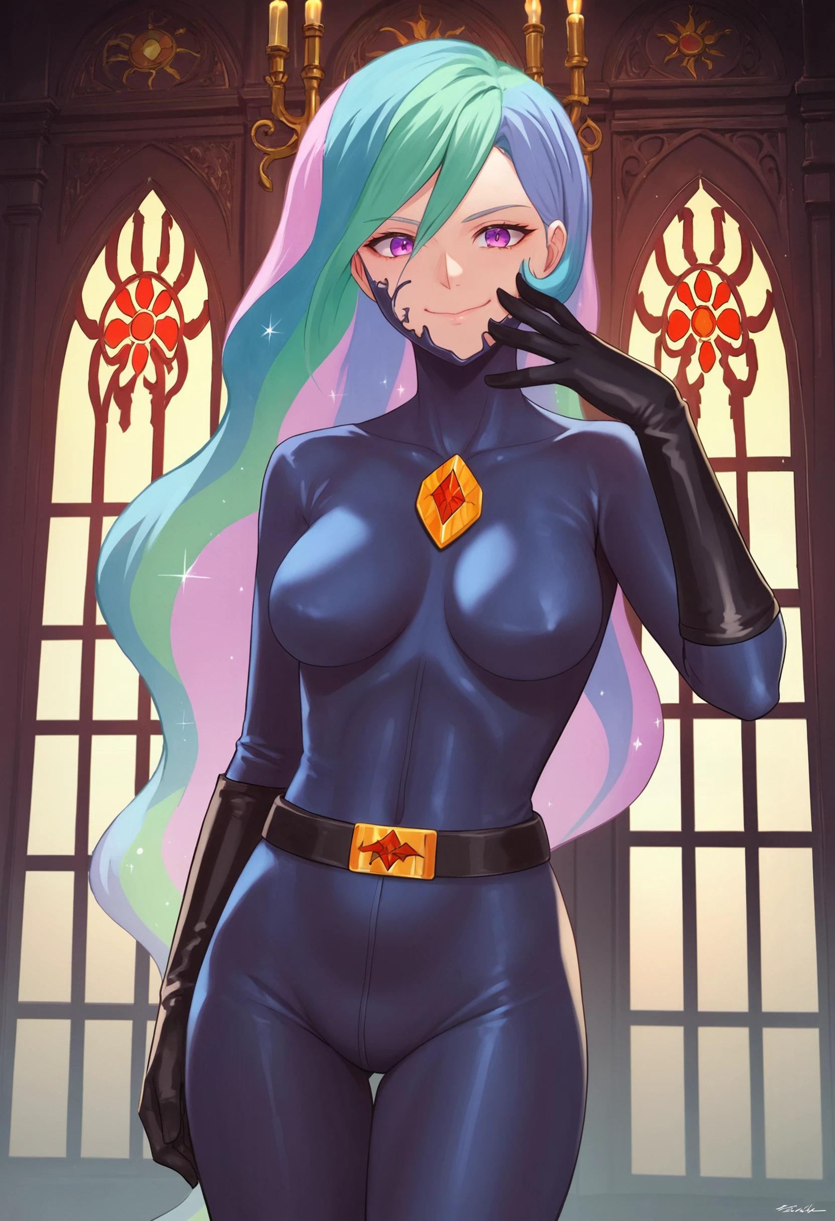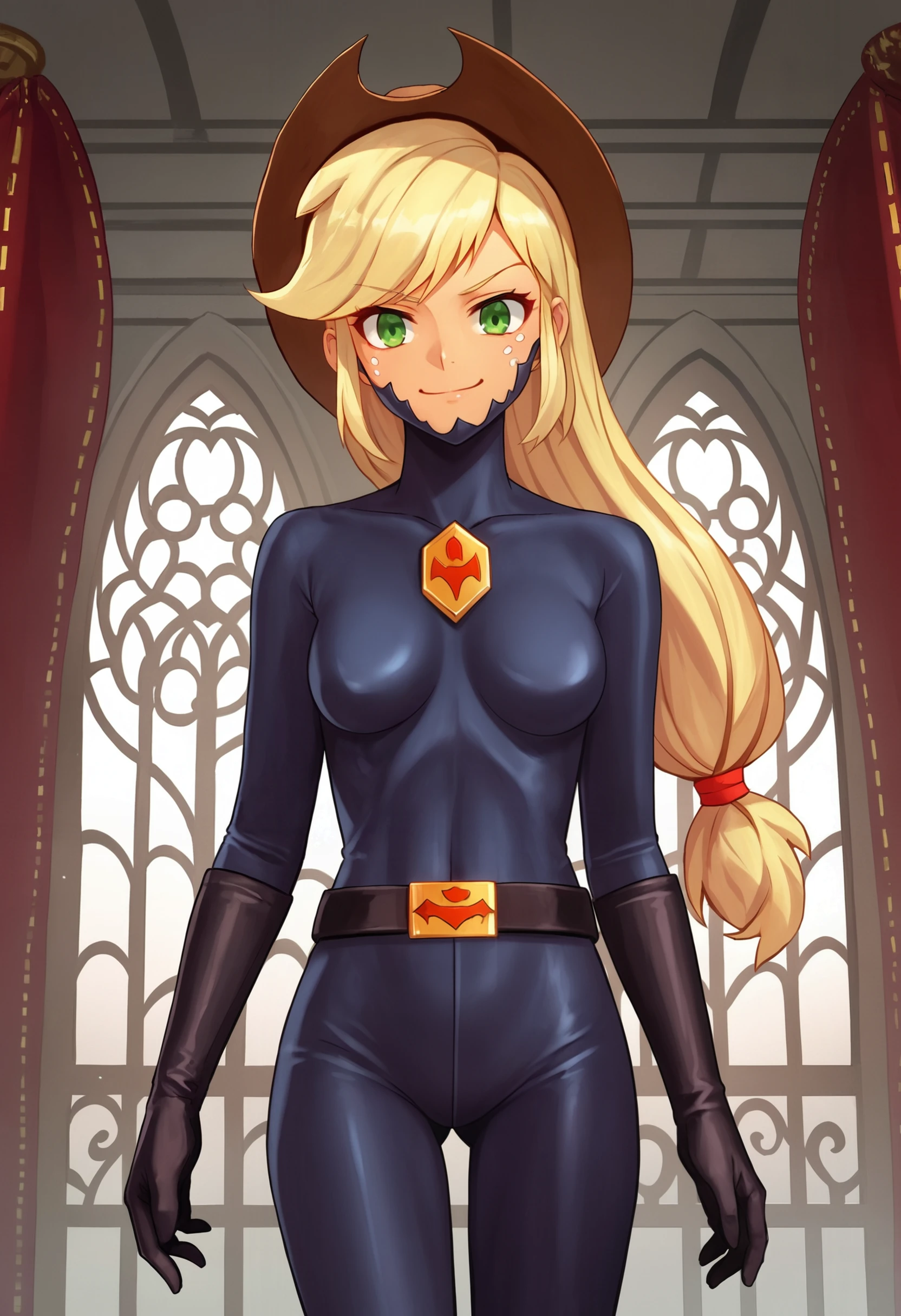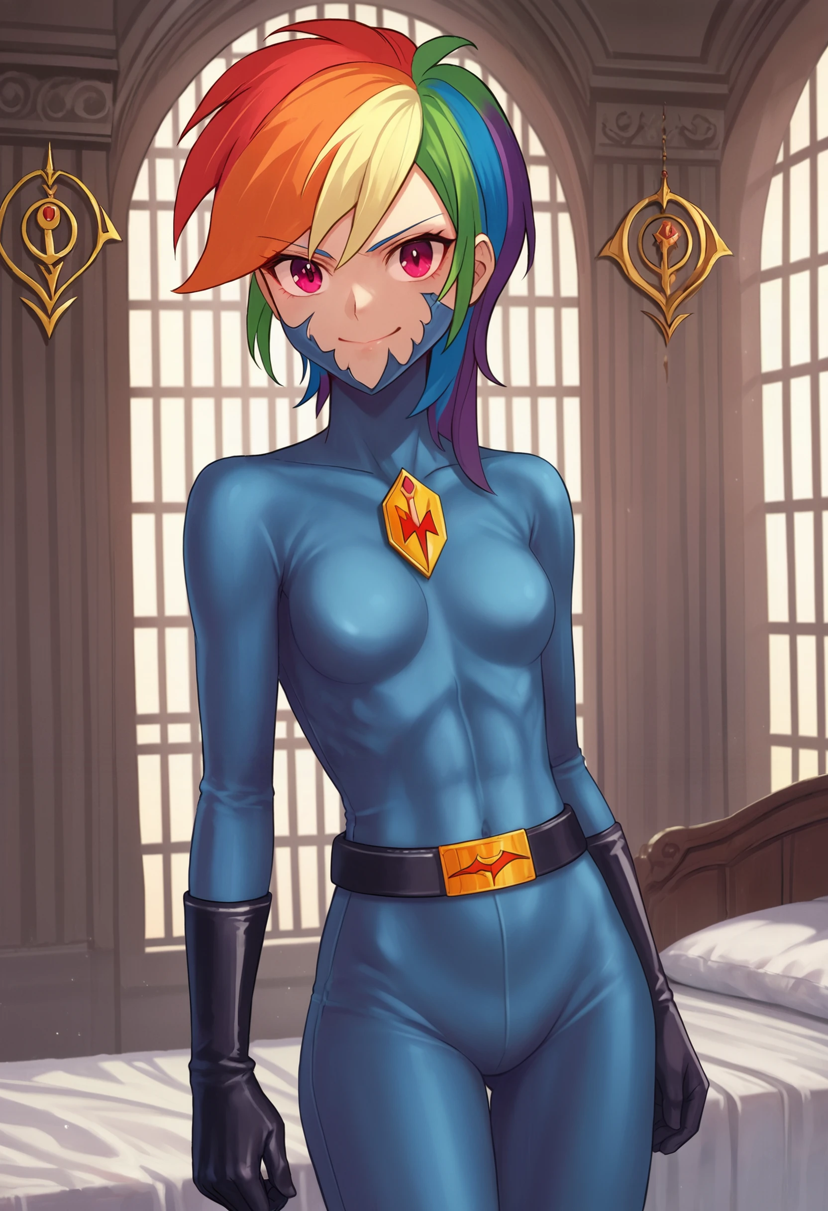 zofa belt, chest jewel, forehead mark, black gloves, black boots