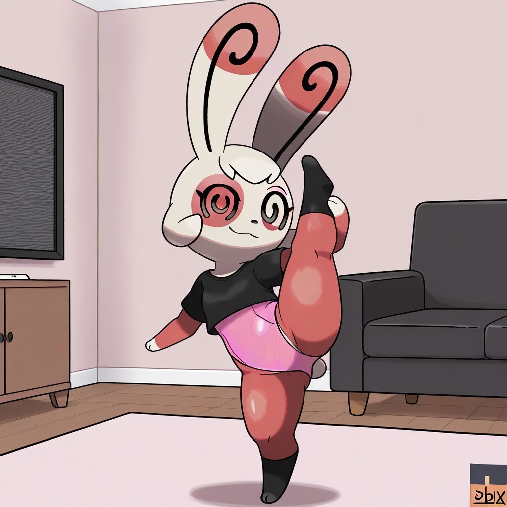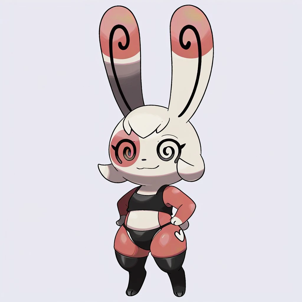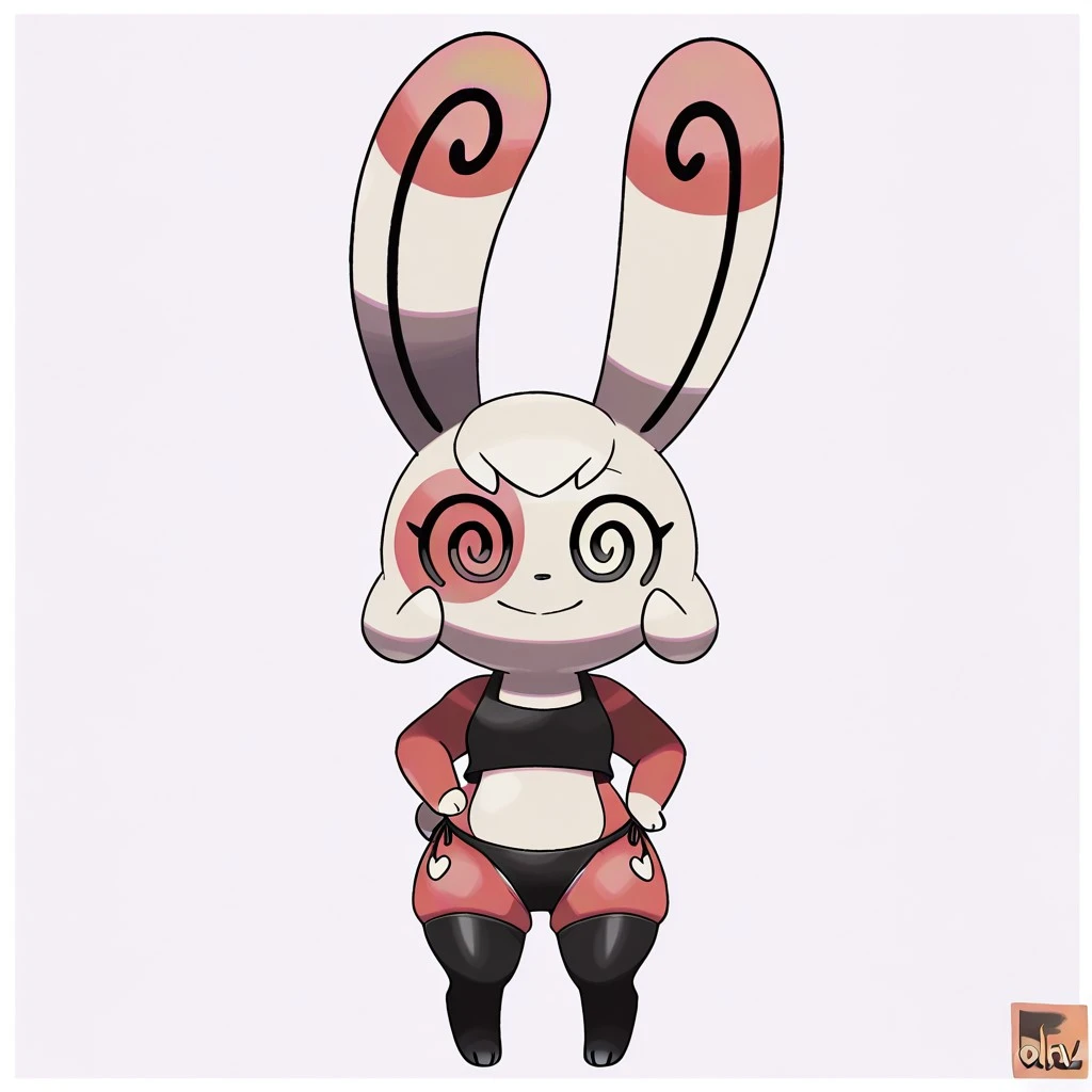 pokemon (creature), spinda, tan and red fur, short hair, spiral eyes, @@, black nose, long ears, small cotton tail, shortstack,