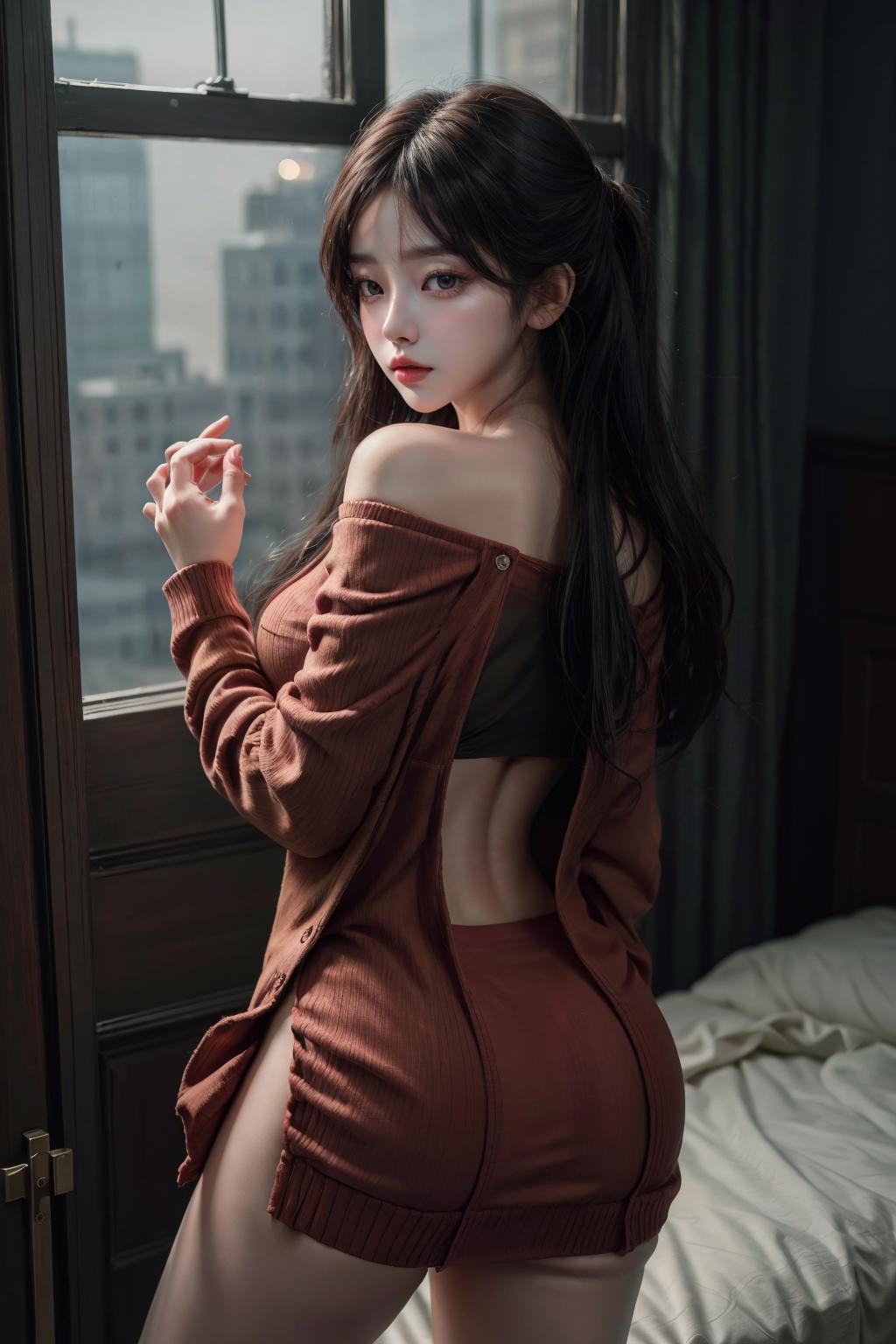 前面视角? 感觉没啥必要,毕竟你不用lora,直接写 "red sweater, off-shoulder sweater, strapless" 也是一样的。