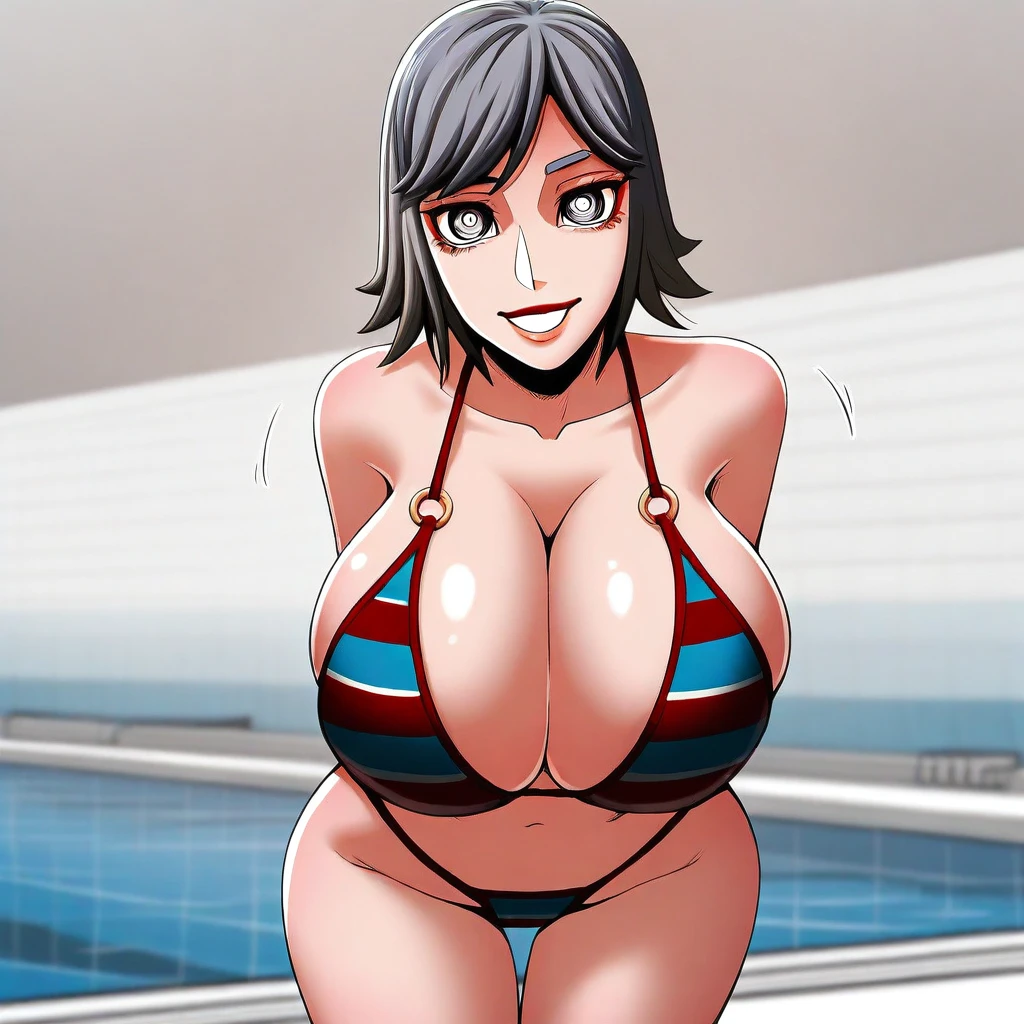 6. ((sexy ?????? blue edge bikini with white-blue stripes, obscene cleavage, huge cleavage, ))