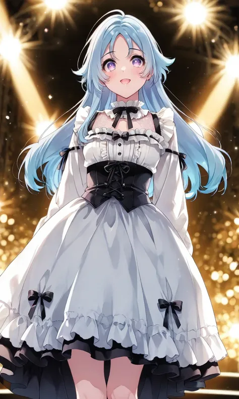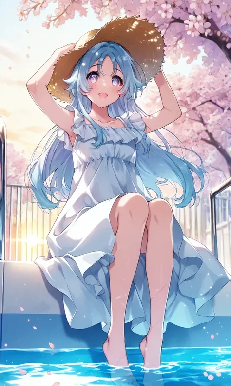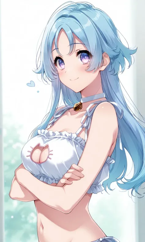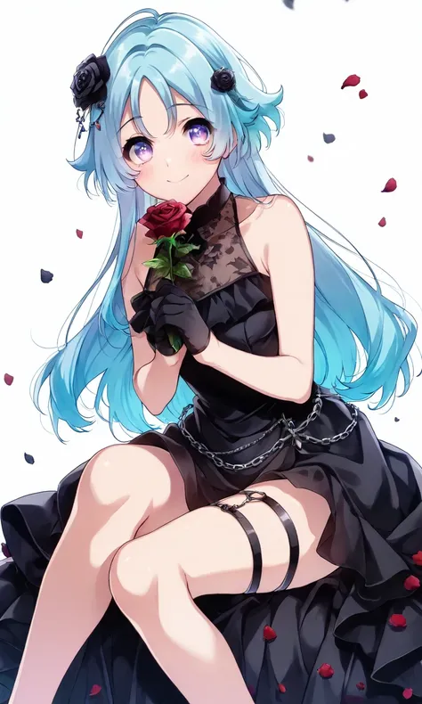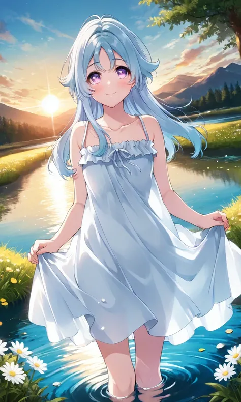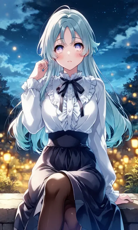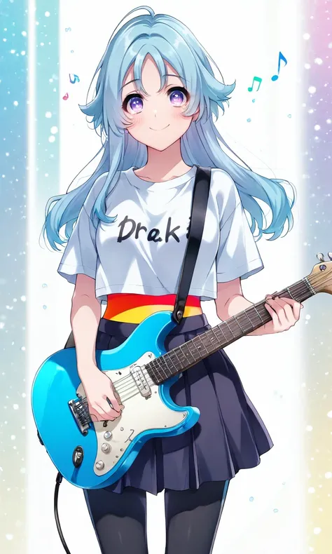 Tachibana_Aina, blue_hair, purple_eyes, long_hair, school_uniform, serafuku, dark_blue_shirt, sailor_collar, light_blue_collar, neckerchief, short_sleeves, white_skirt