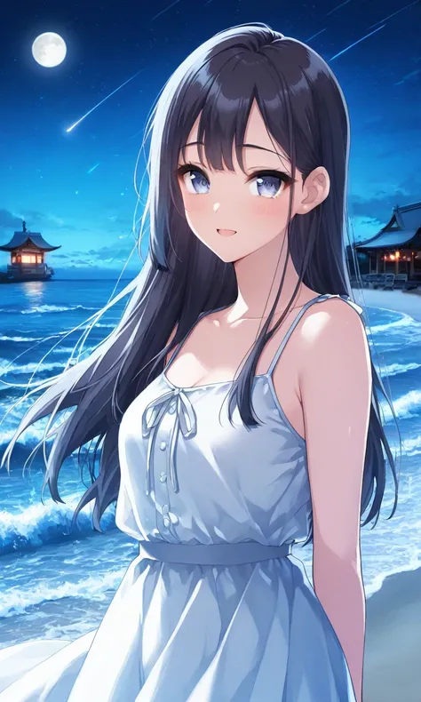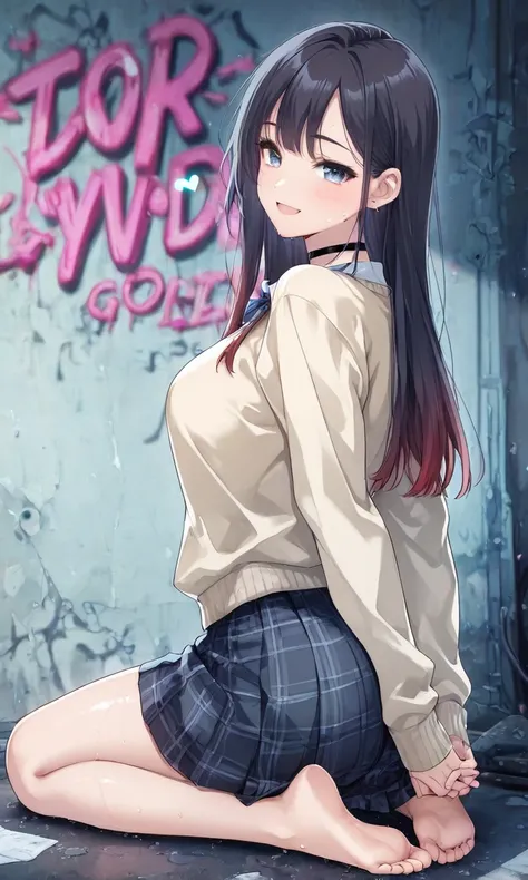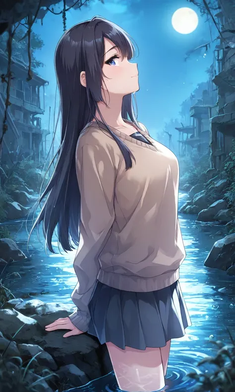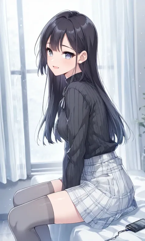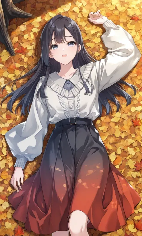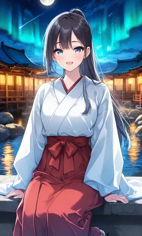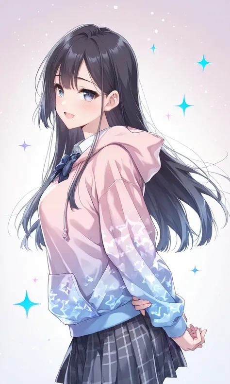 Utsumi_Hinowa, black_hair, ponytail, long_hair, high_gradient_hair, long_ponytail, ribbon_hair, blue_eyes, high gradient eyes, medium_breasts