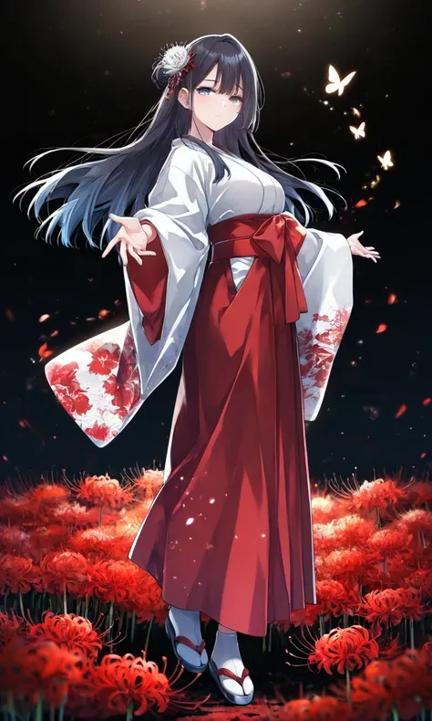 kimono, white_kimono, red_skirt, long_skirt, white_socks, sandals