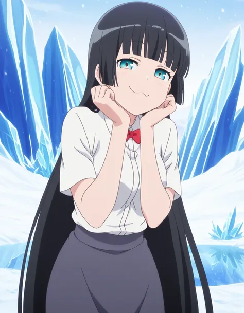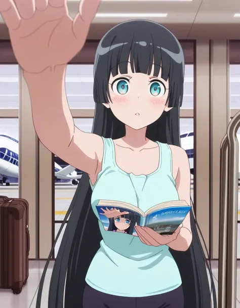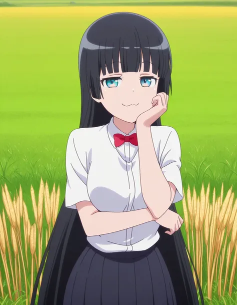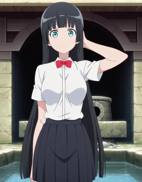 akemi souryuuin, long hair, bangs, black hair, very long hair, blunt bangs, aqua eyes, hime cut, mature female, medium breasts, anime screencap